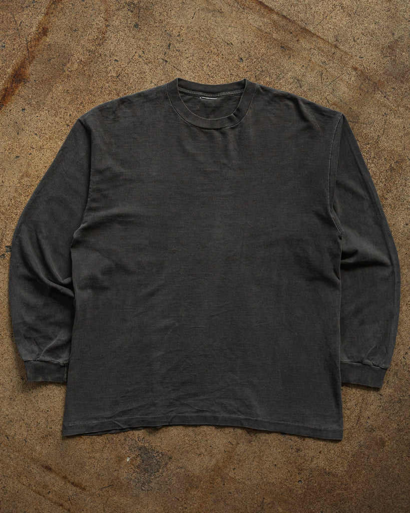 Single Stitched Faded Black Blank Long Sleeve Tee - 1990s