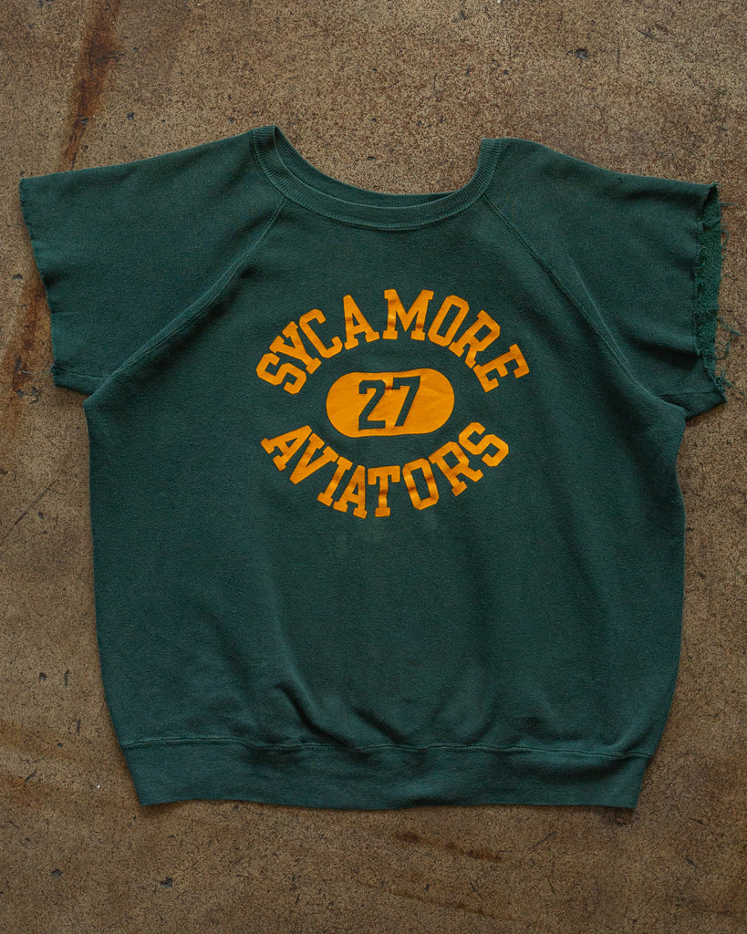 Forest Green "Sycamore Aviators" Champion Cut-Off Sweatshirt - 1970s