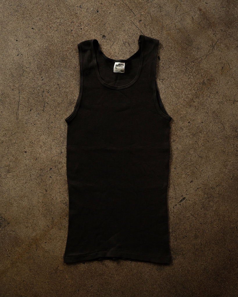 Single Stitched Black Blank Ribbed Tank Top - 1990s