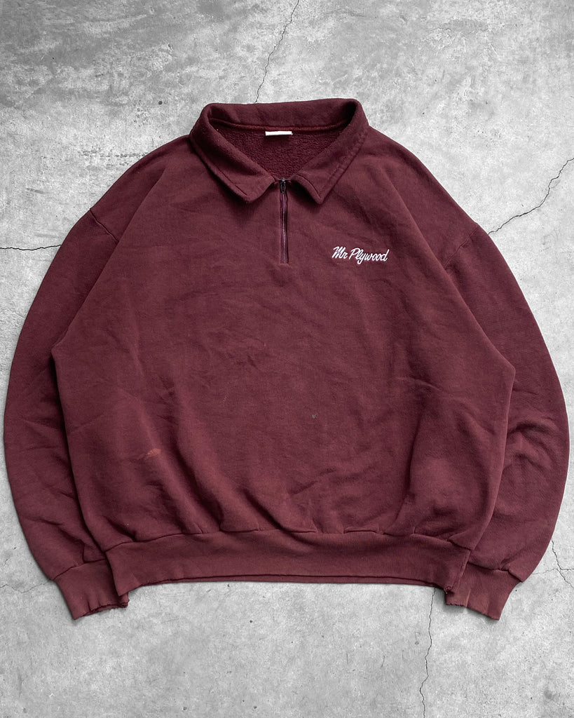 Burgundy "Mr. Plywood" Quarter-zip Sweatshirt - 1980s
