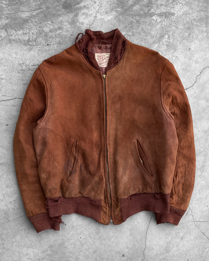 Camel Distressed Suede Bomber Jacket - 1950s