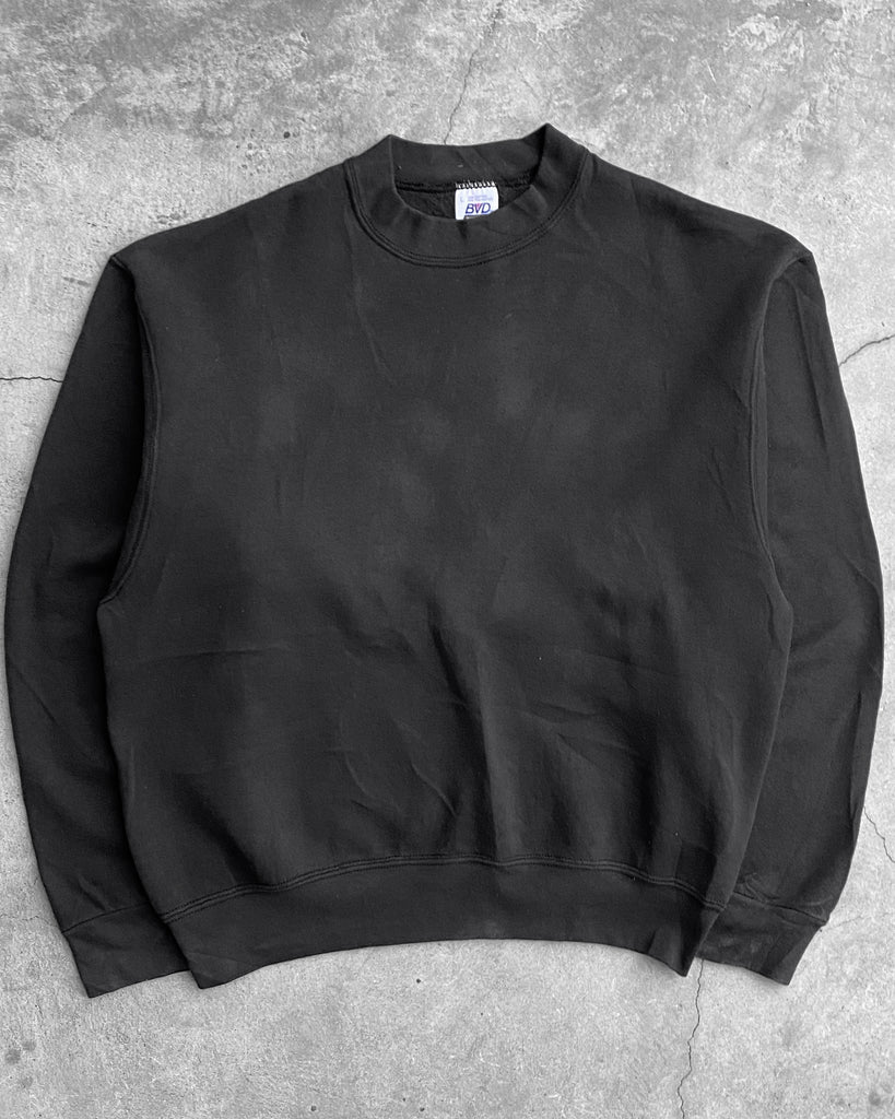 BVD Black Blank Crewneck Sweatshirt - 1990s
