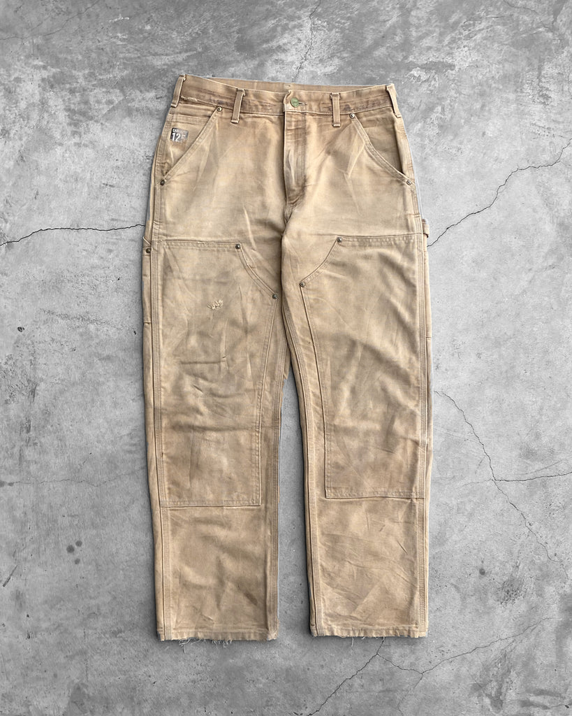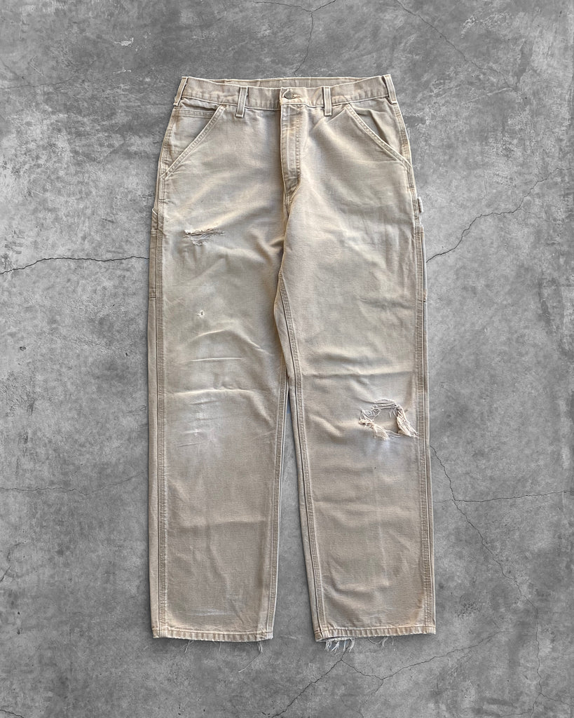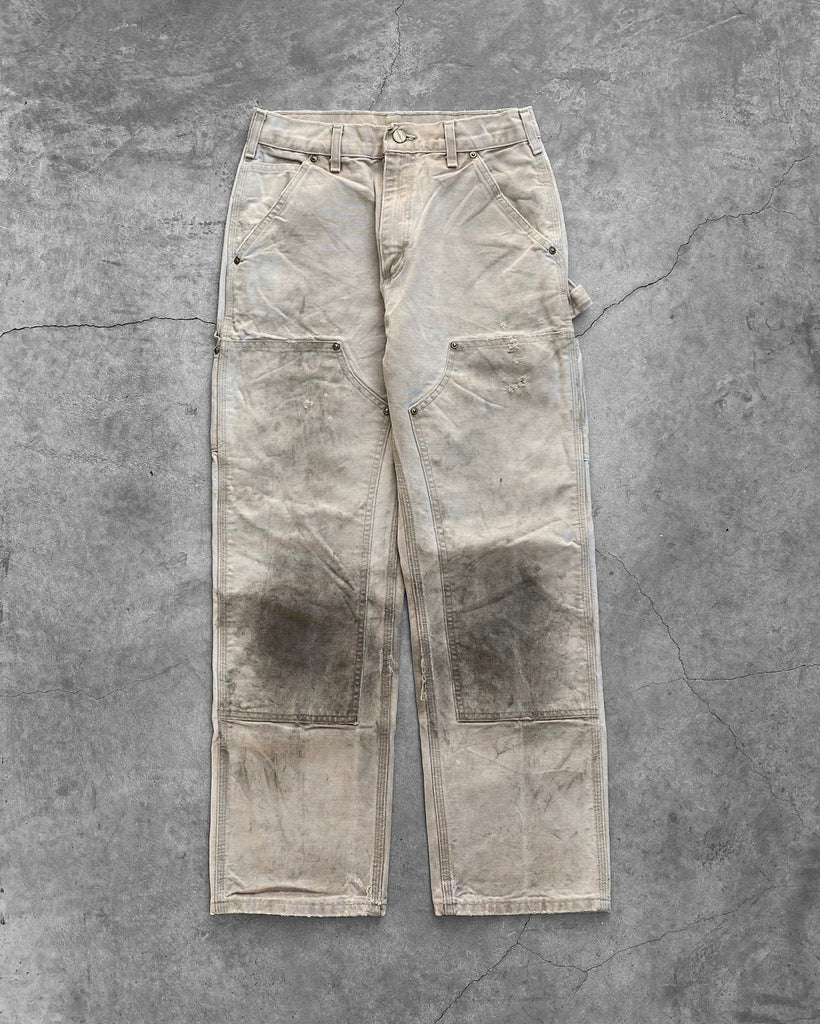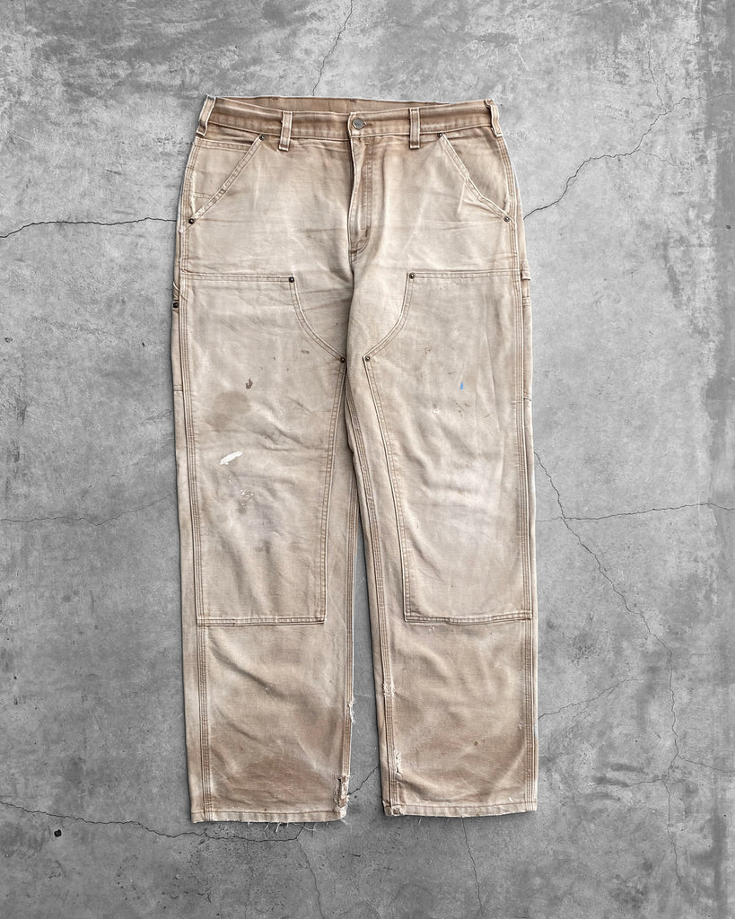 Carhartt Beige Distressed Oil Stained Double Knee Work Pant - 1990s