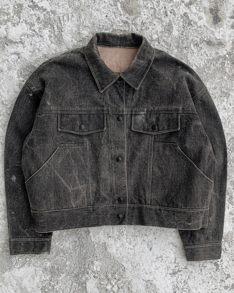 Carbon Grey Snap-Button Cropped Trucker Jacket - 1980s