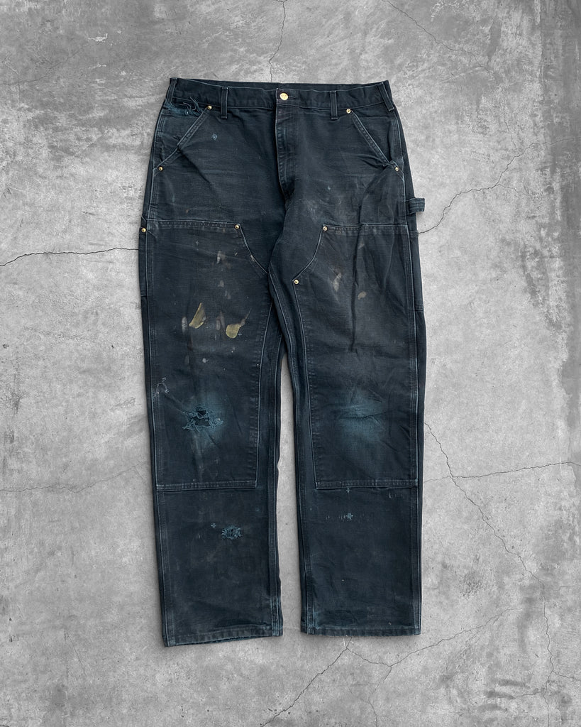 Carhartt Black Painted Blown Out Double Knee Work Pant - 1990s