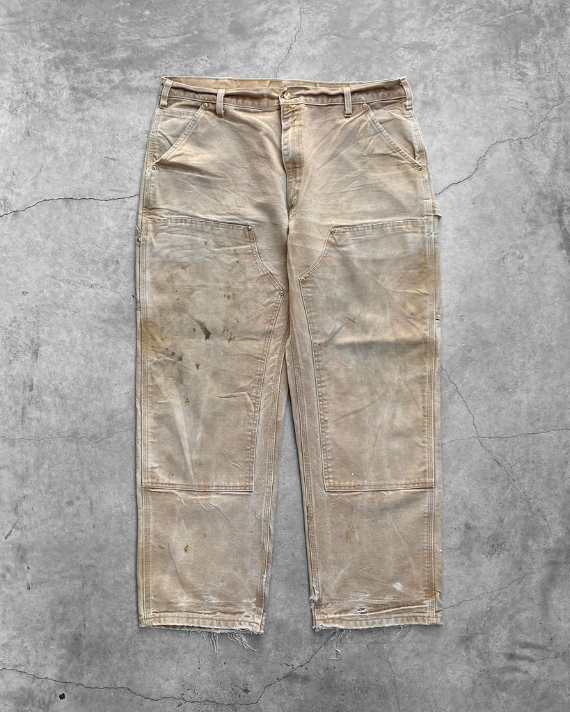 Carhartt Tan Oil-Stained Distressed Double Knee Work Pant - 1990s