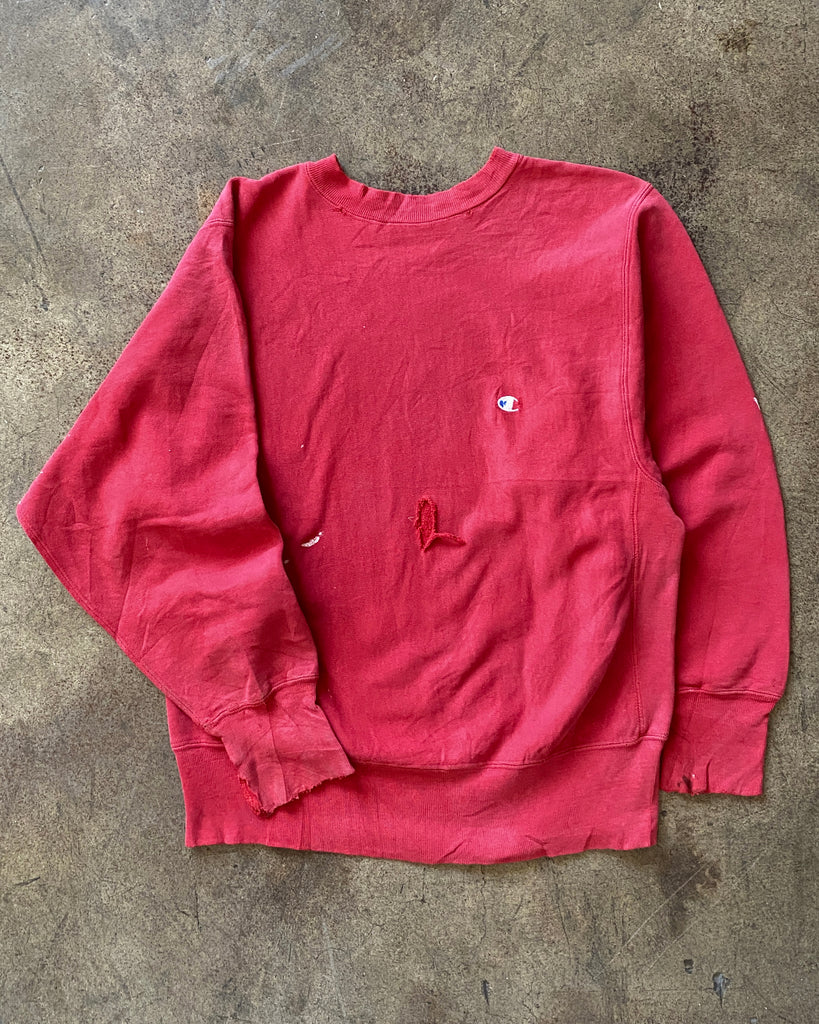 Champion Red Distressed Crewneck Sweatshirt - 1980s