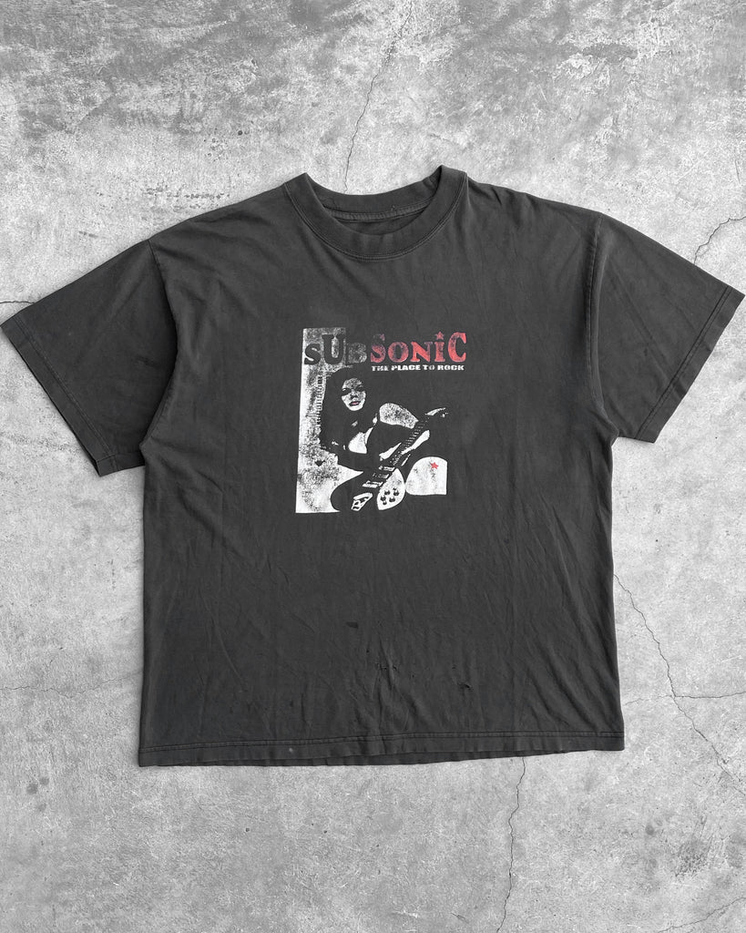 Faded Black Blank Distressed Pocket Tee - 1990s