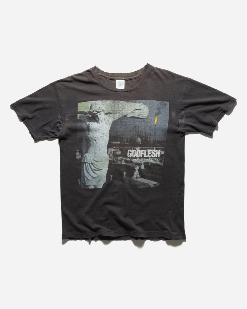 VINTAGE 1990S GODFLESH 'SONGS OF LOVE AND HATE’ FADED BLACK BAND TEE