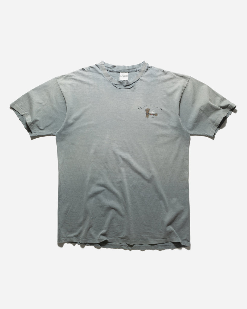 VINTAGE 1990S MONTANA 'CATCH AND RELEASE' SUN FADED MINT & DISTRESSED TEE