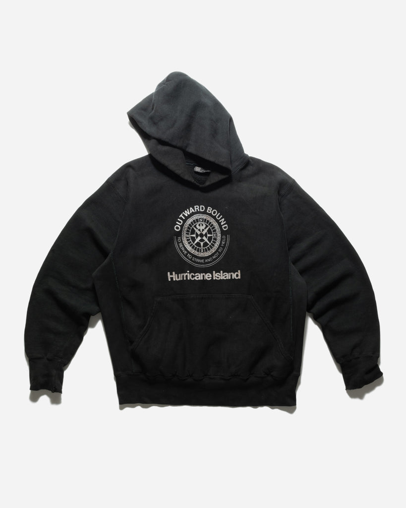 VINTAGE 1990S 'OUTWARD BOUND' OVERDYED BLACK HOODED SWEATSHIRT