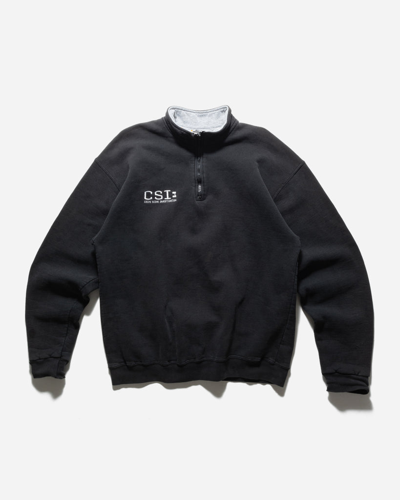 VINTAGE 1990S 'CSI' FADED BLACK QUARTER ZIP SWEATSHIRT