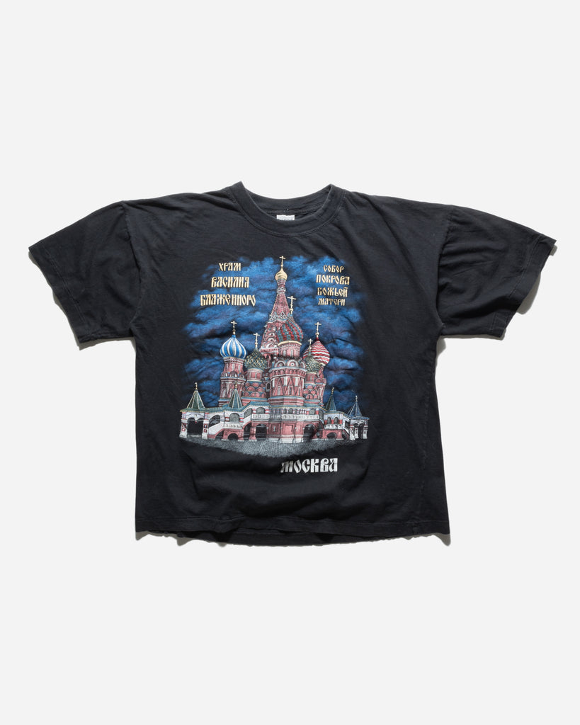 VINTAGE 1990S ST BASIL'S CATHEDRAL RUSSIA FADED BLACK CROPPED TEE