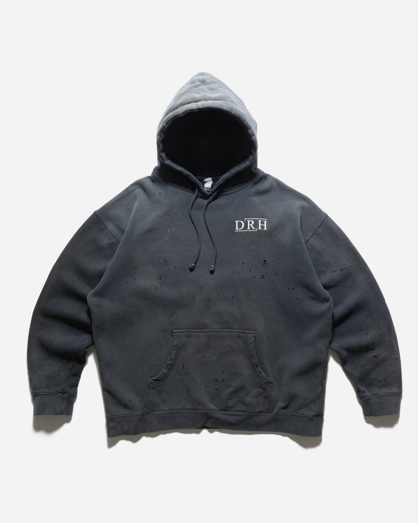 VINTAGE 2000S 'DRH CONCRETE' FADED AND DISTRESSED HOODED SWEATSHIRT