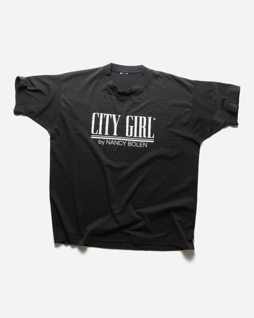 VINTAGE 1990S 'CITY GIRL' FADED BLACK TEE