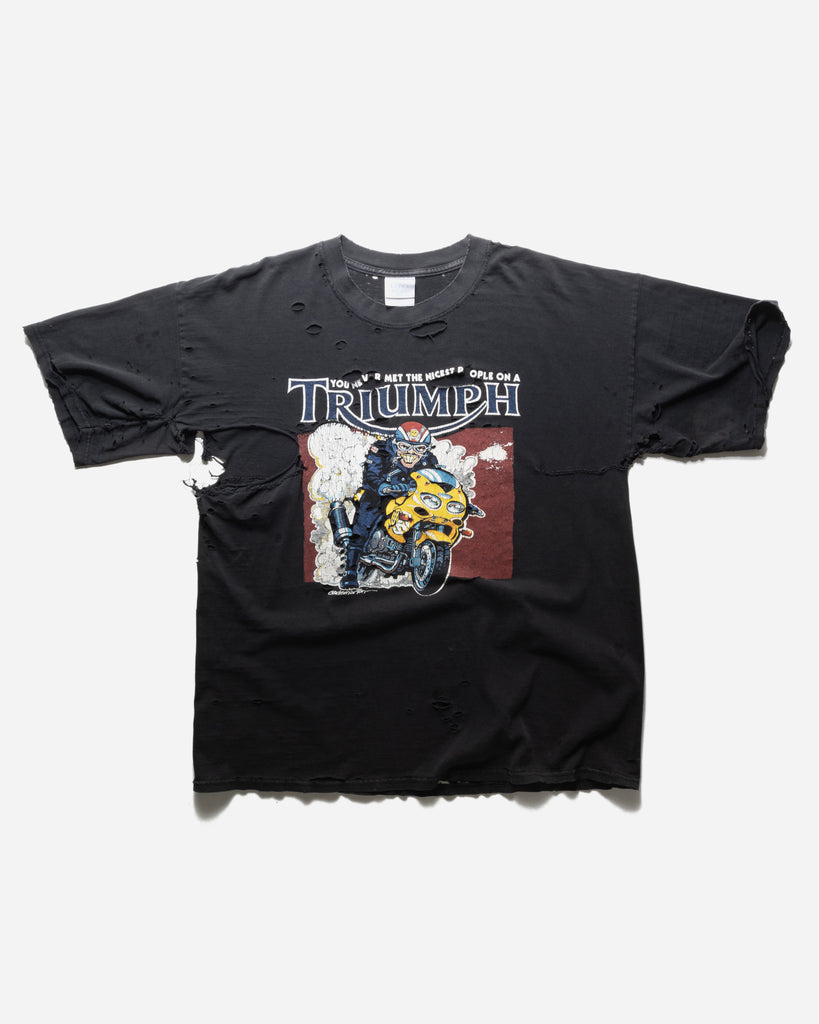 VINTAGE 1990S TRIUMPH THRASHED FADED BLACK TEE