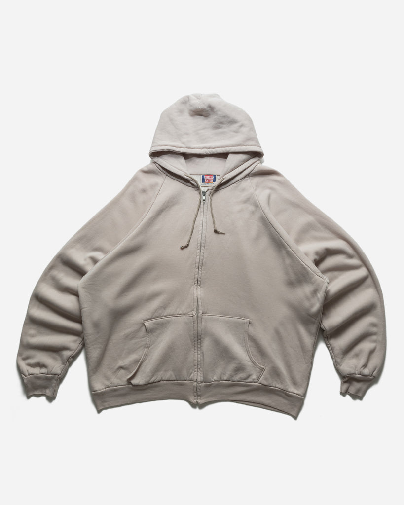 VINTAGE 1990S BEIGE THERMAL LINED ZIP UP HOODED SWEATSHIRT