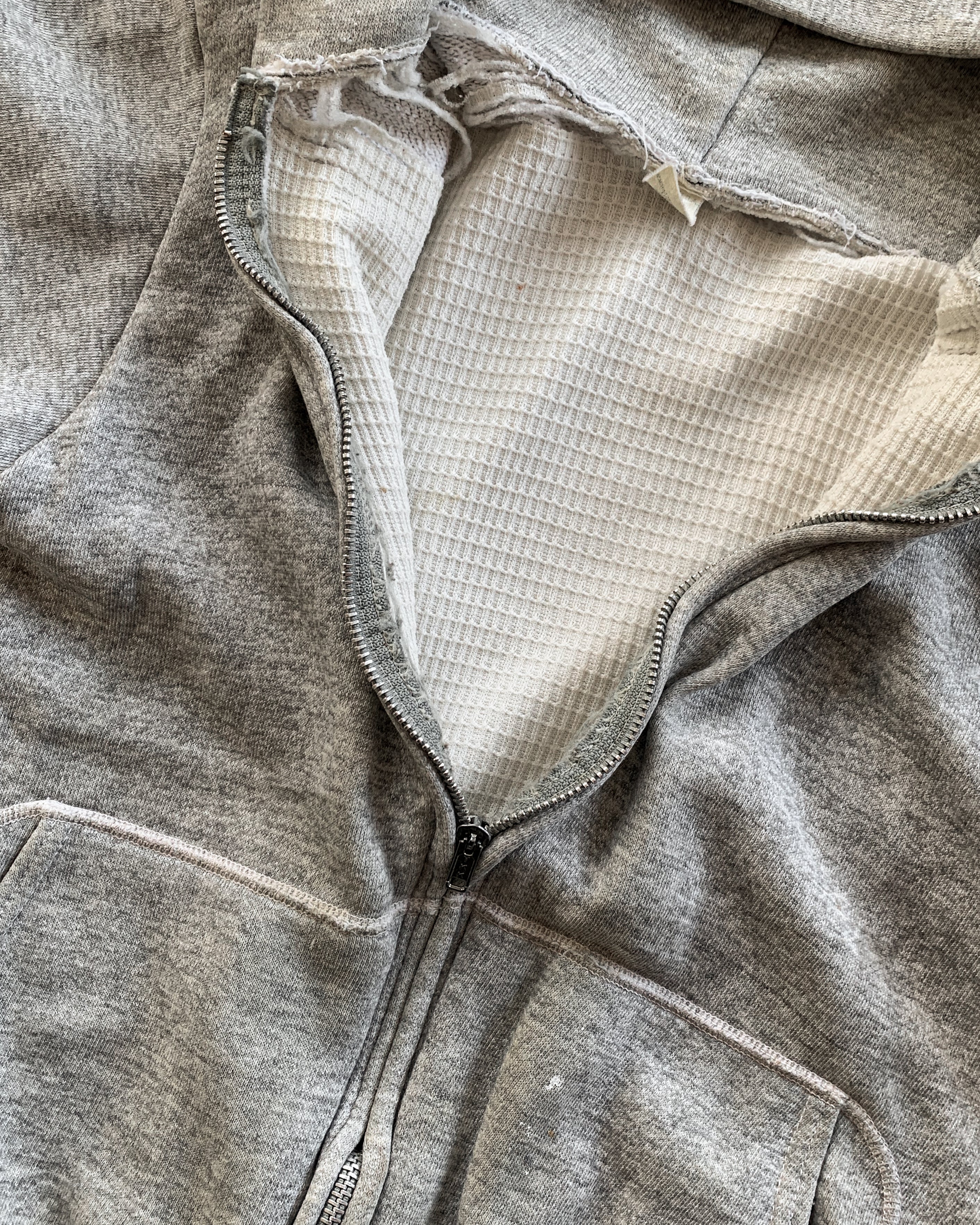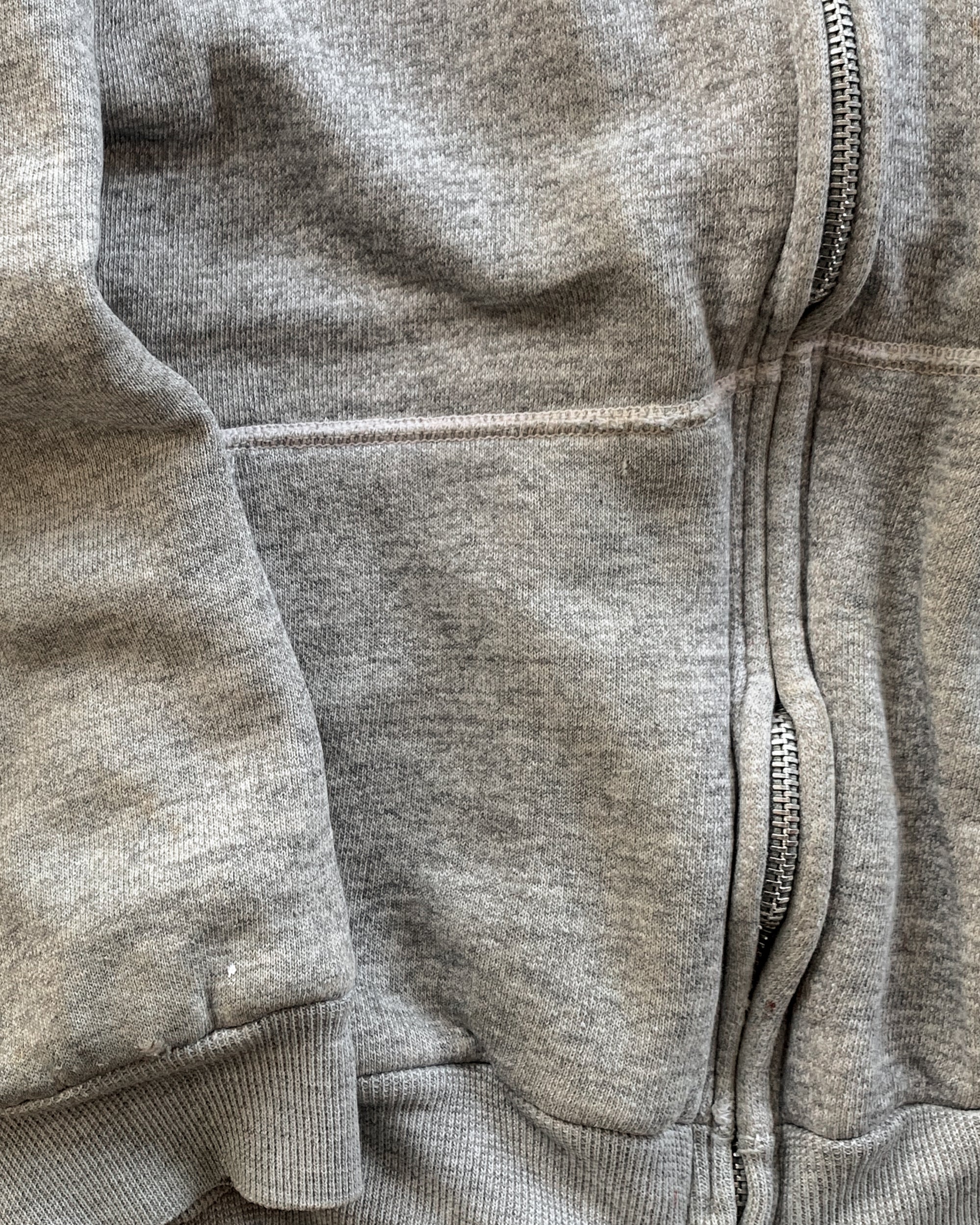 Heather Grey Blank Thermal-Lined Zip-Up Hooded Sweatshirt - 1960s