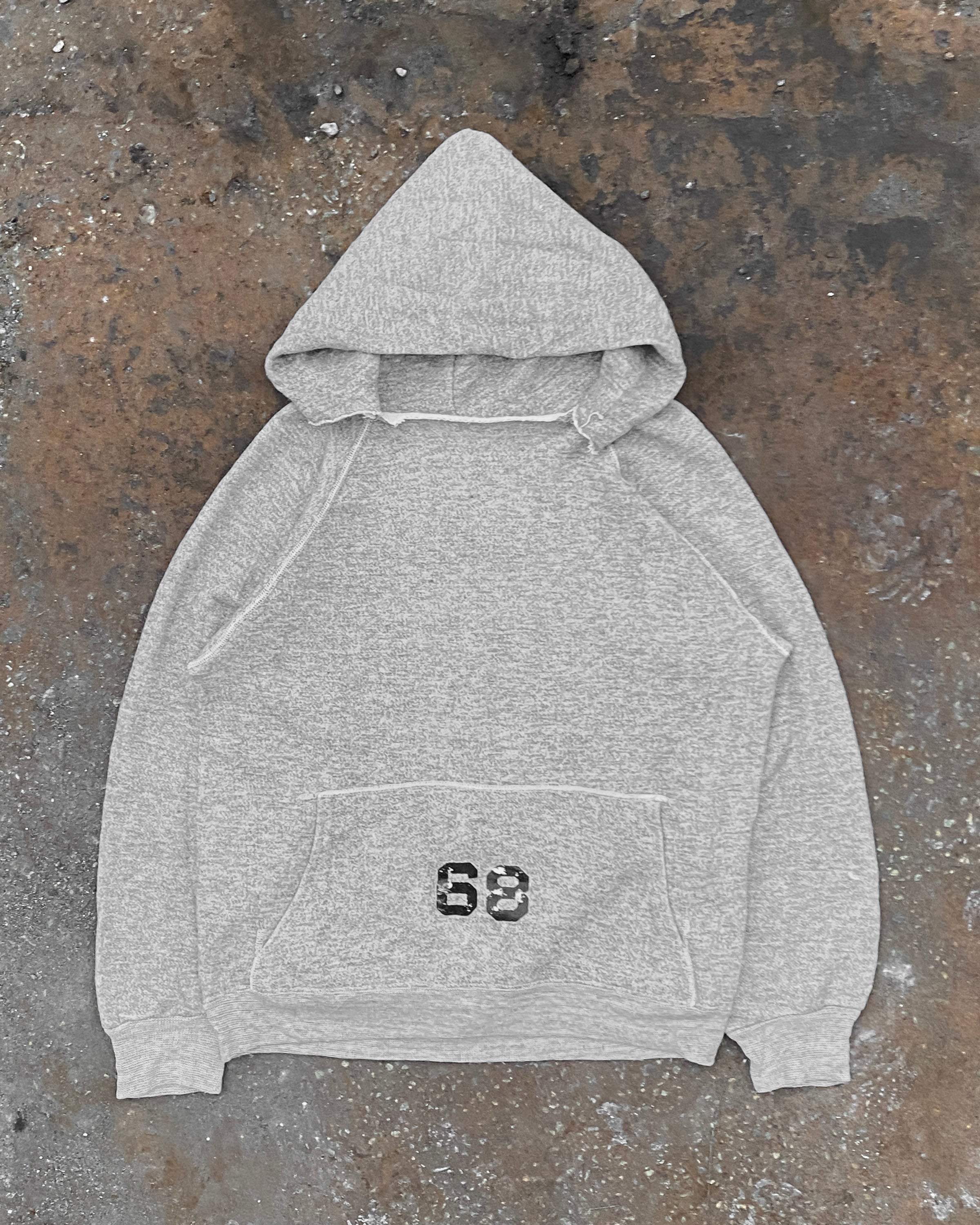 Heather Grey "68" Raglan Hooded Sweatshirt - 1980s