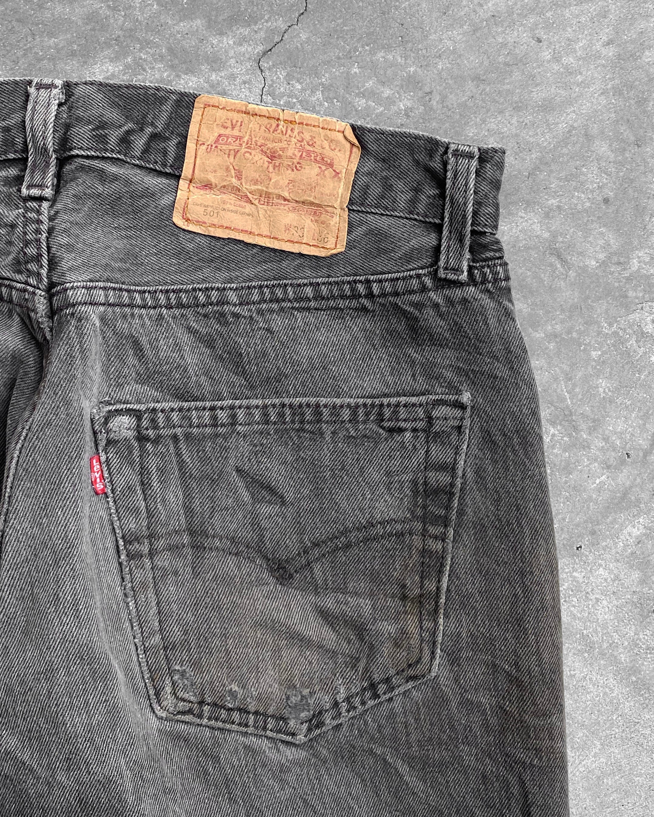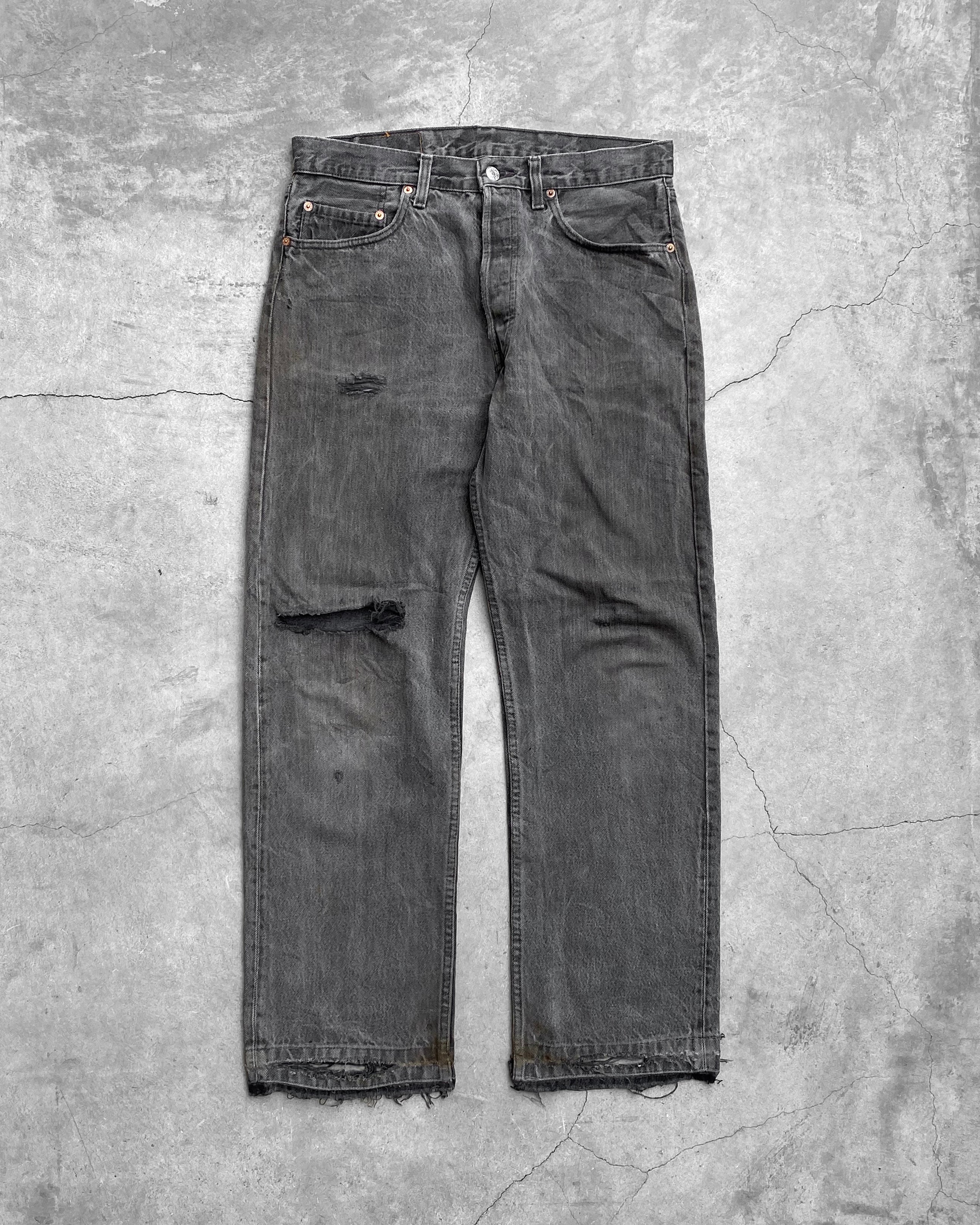 Levi's 501 Distressed & Faded Grey Jeans - 1990s