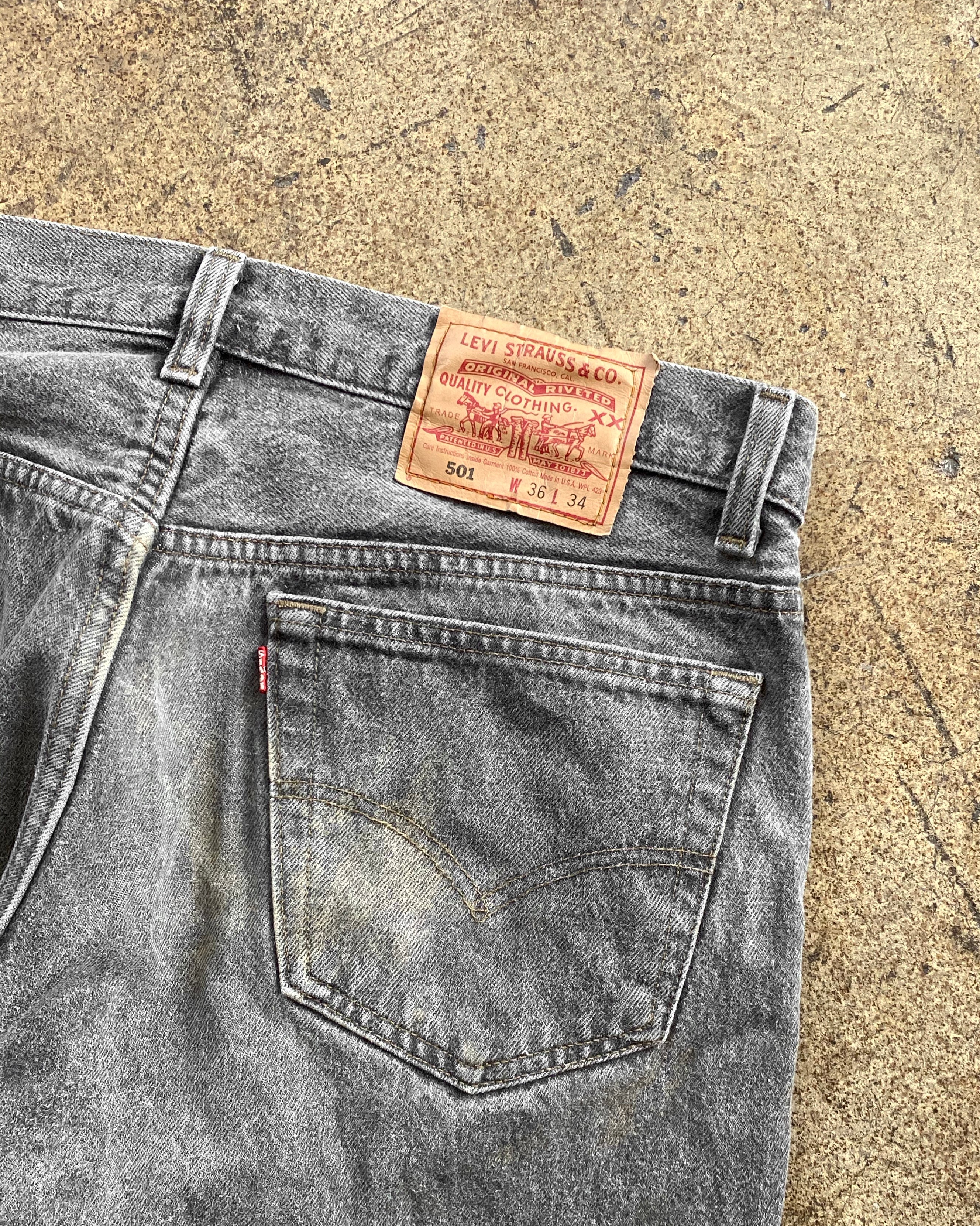 Levi's 501 Faded Grey Repaired Jeans - 1990s