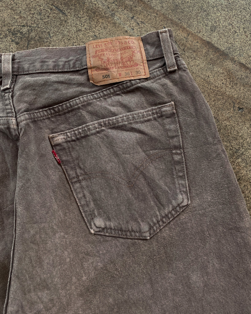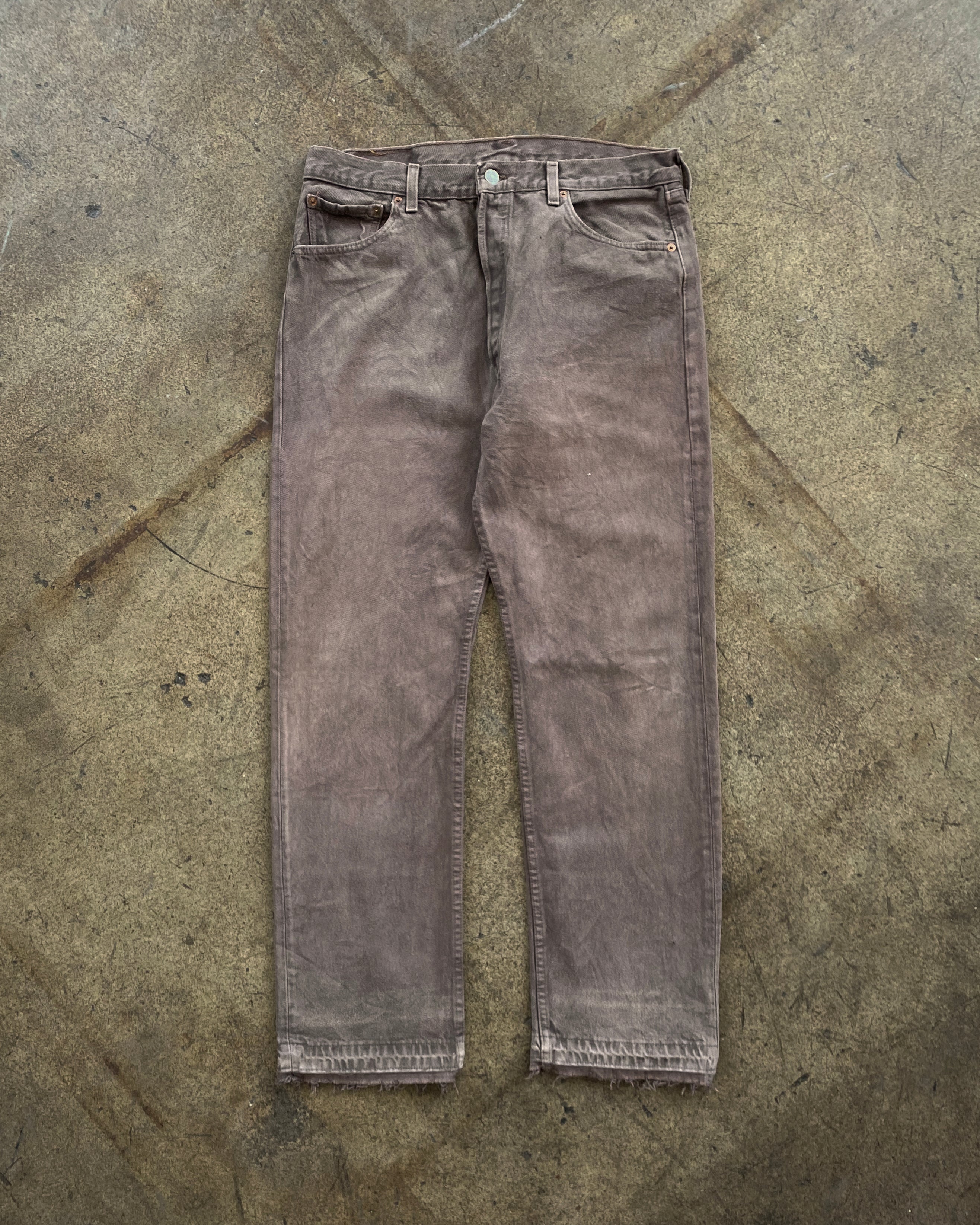 Levi's 501 Sun Faded Mud Brown Released Hem Jeans - 1990s