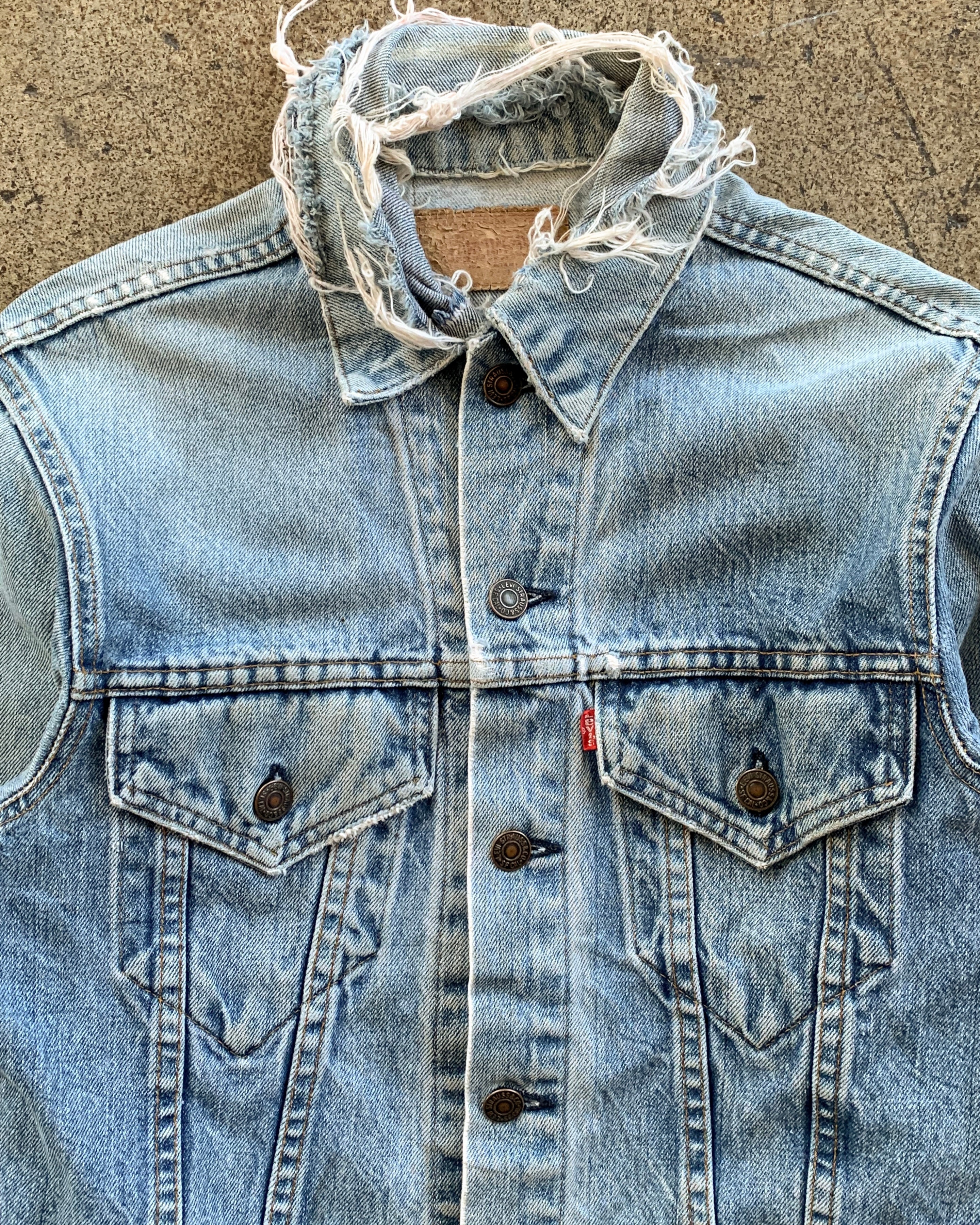 Levi's Distressed Collar Denim Trucker Jacket - 1990s