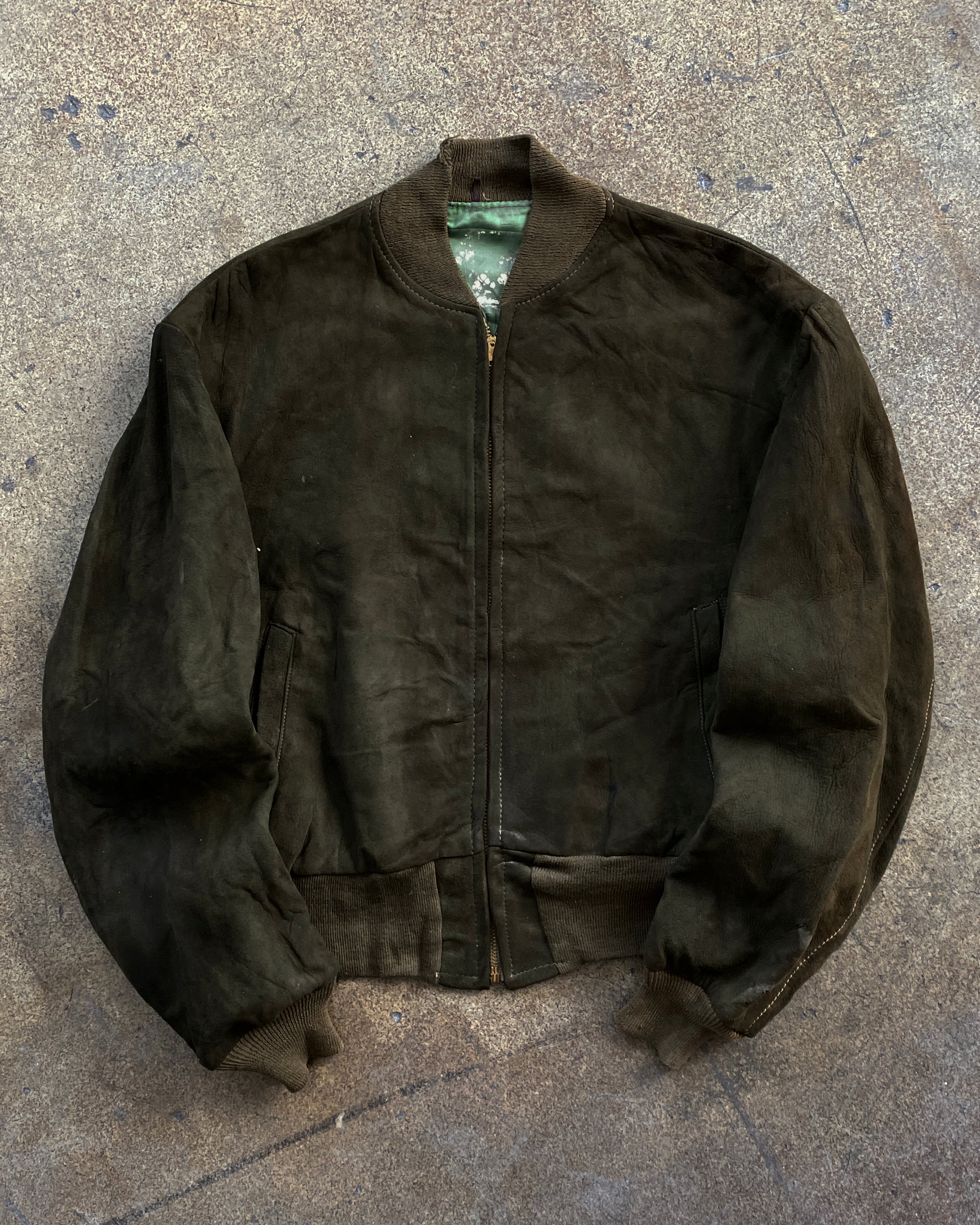 Olive Green Suede Bomber Jacket - 1950s