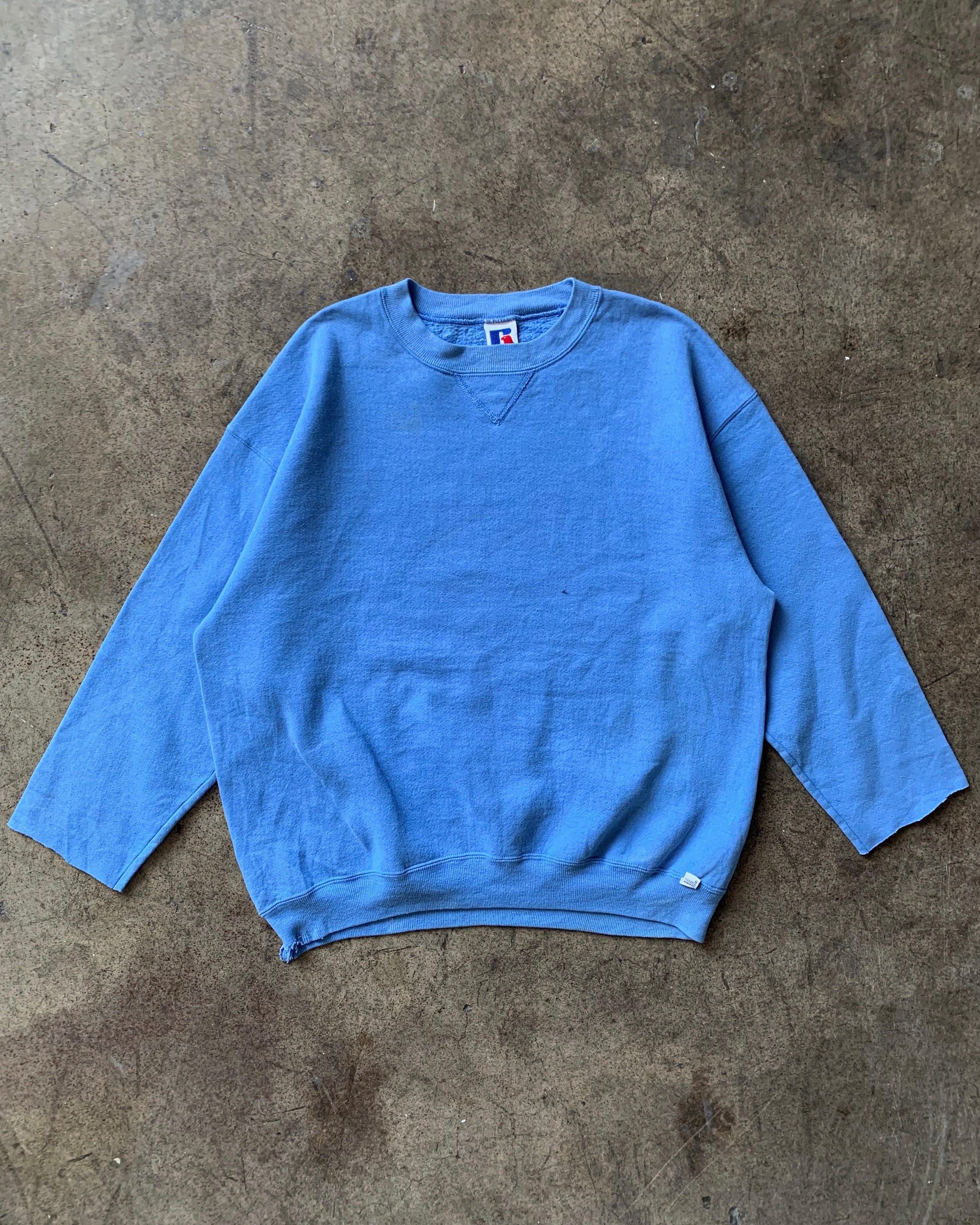 Russell Baby Blue Blank Crewneck Sweatshirt - 1990s