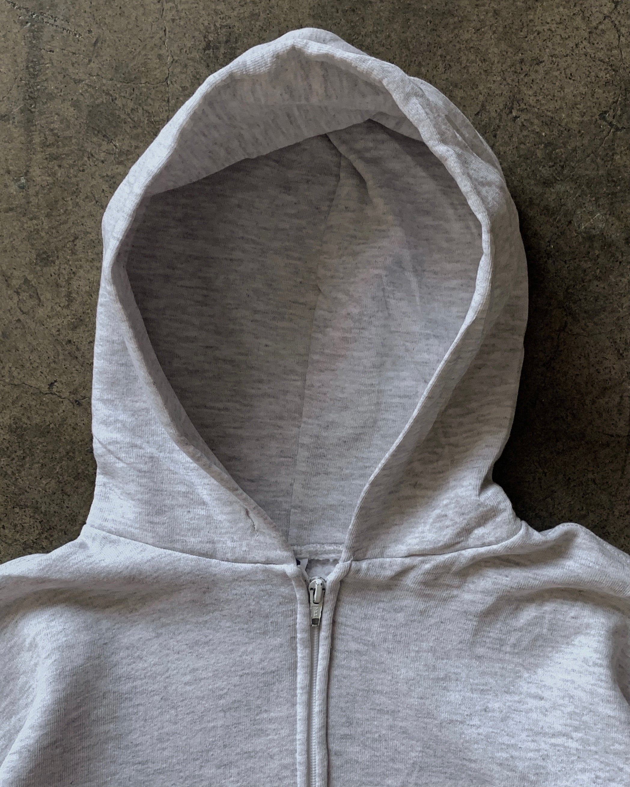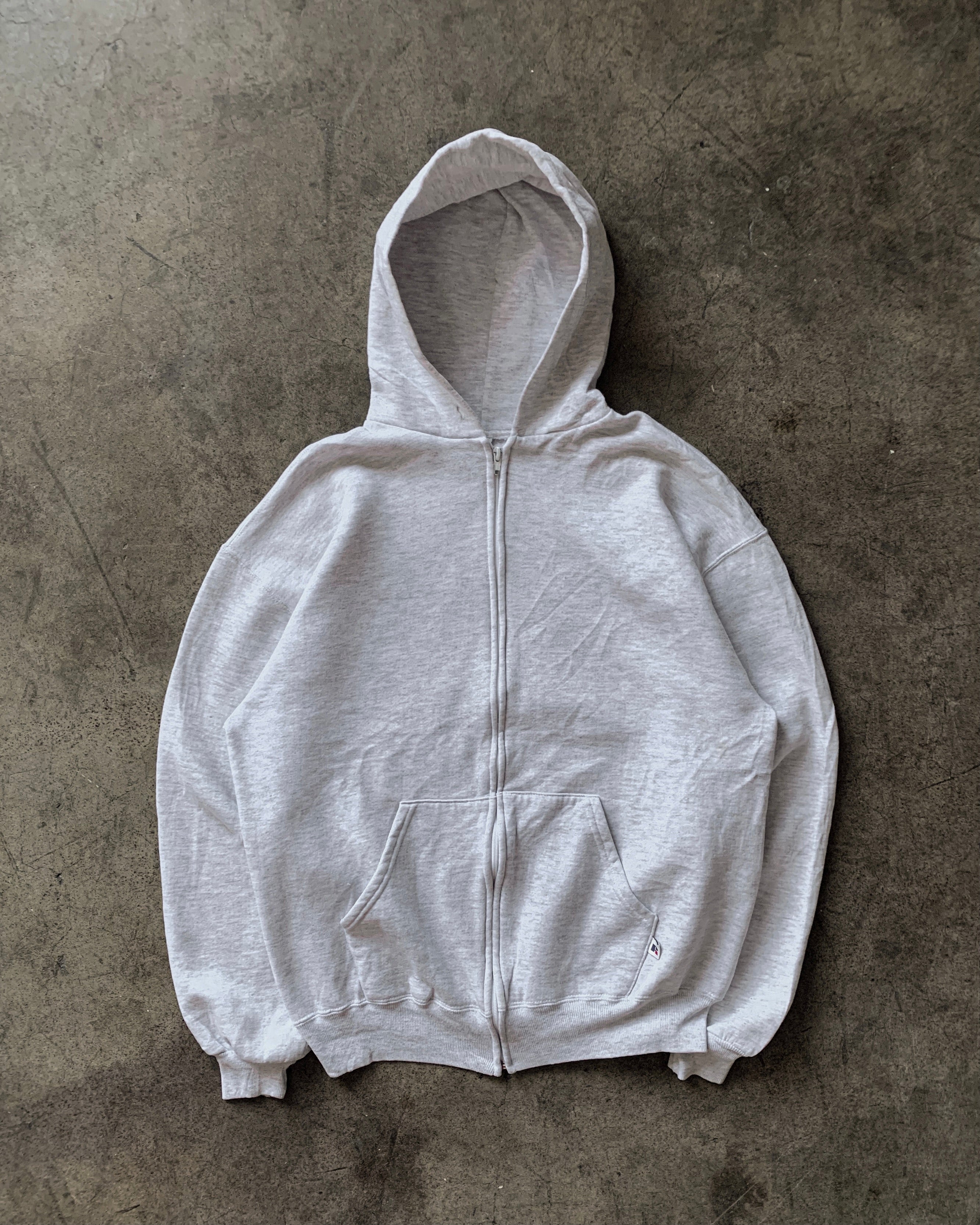 Russell Heather Grey Blank Zip-Up Hooded Sweatshirt - 1990s