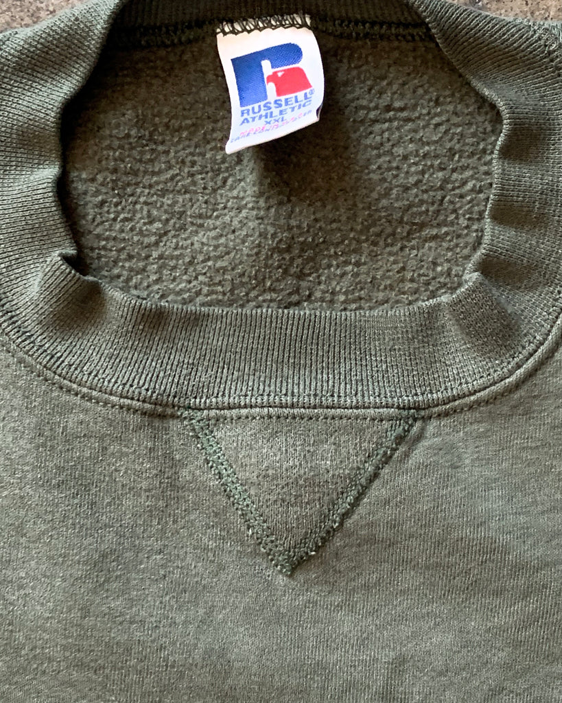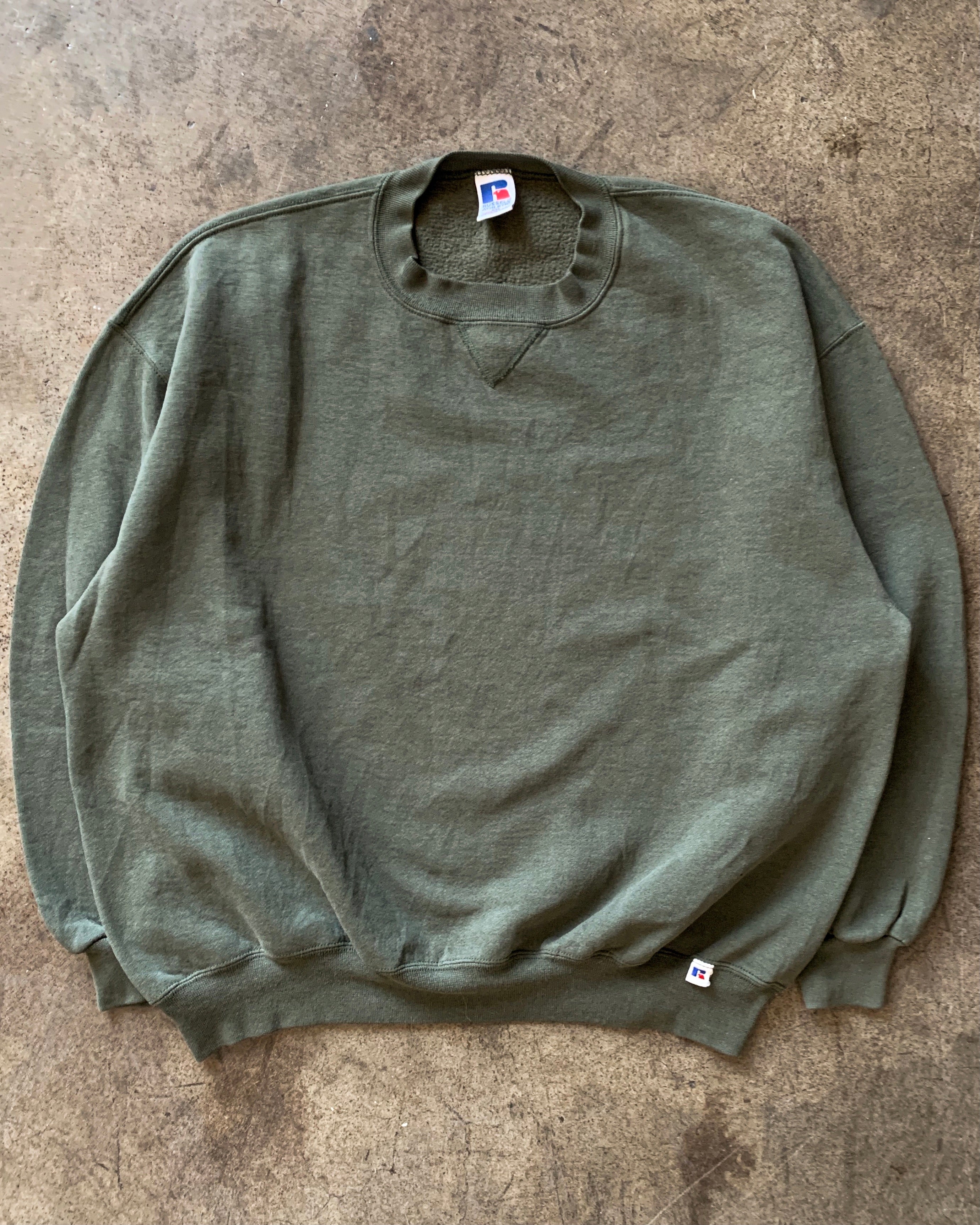Russell Moss Green Blank Crewneck Sweatshirt - 1990s