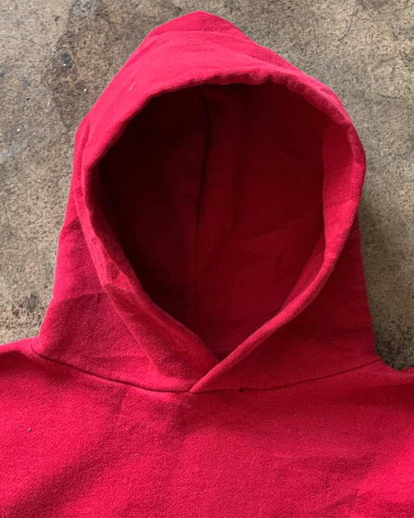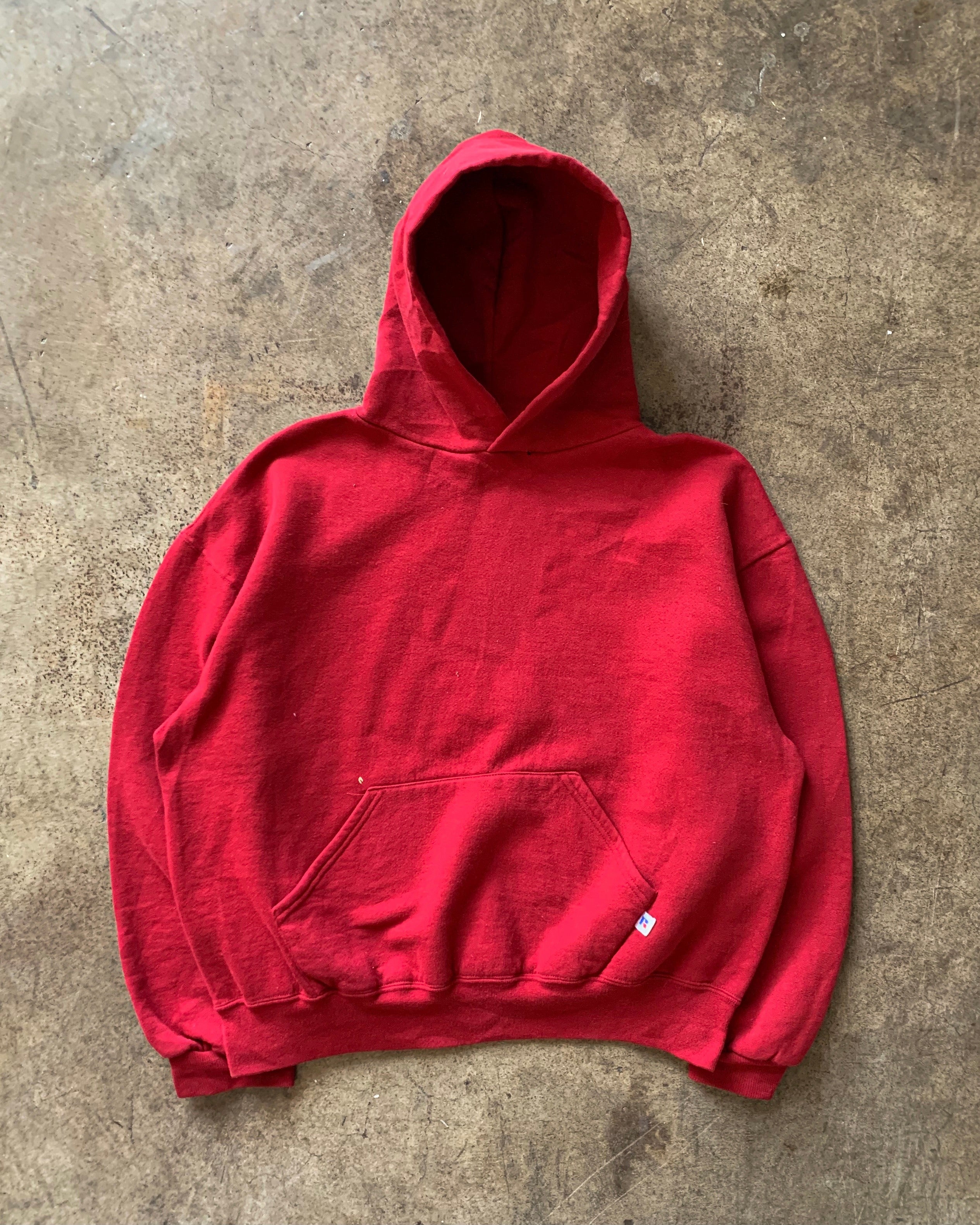 Russell Scarlett Red Distressed Blank Hooded Sweatshirt - 1990s