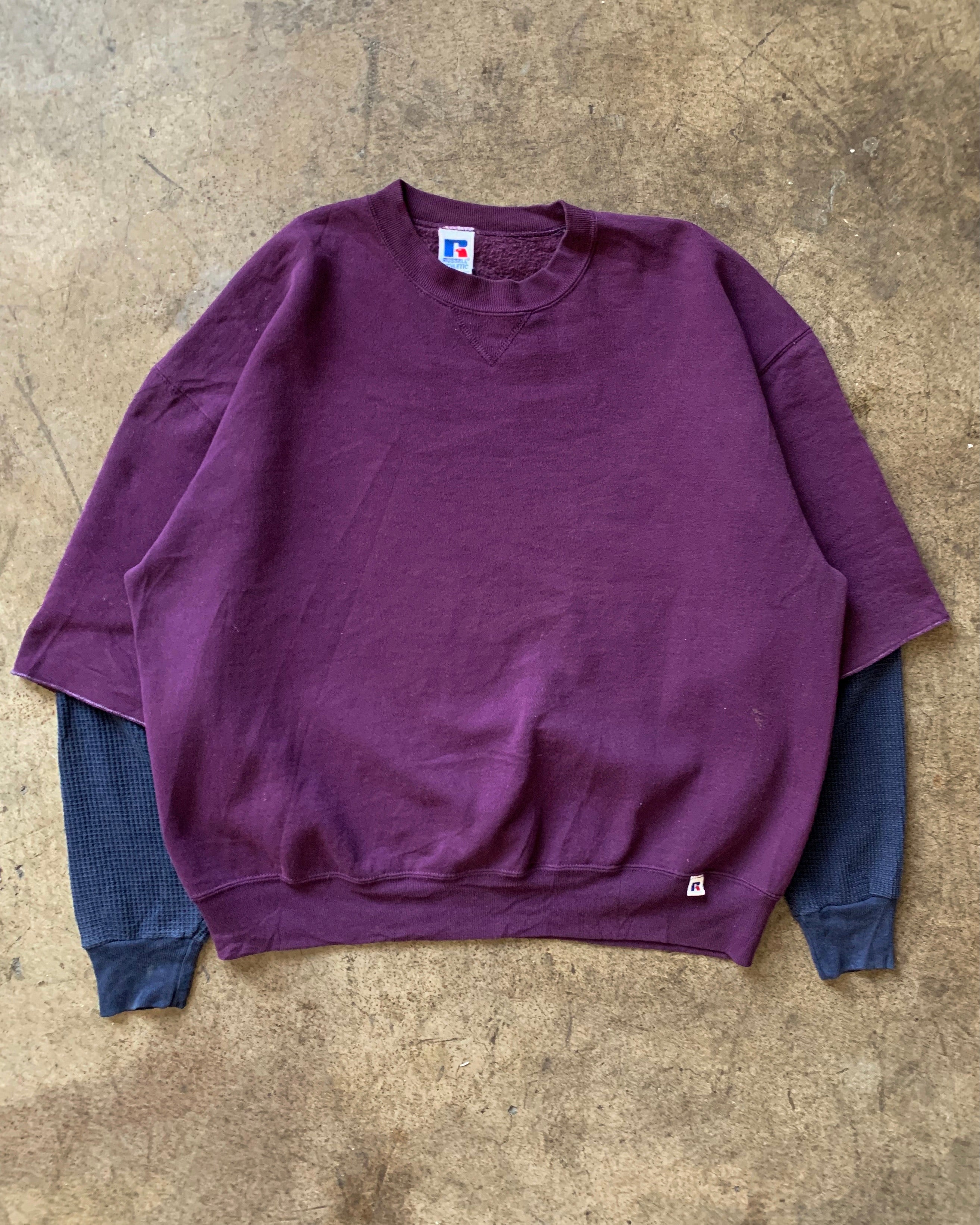 Russell Thermal Layer Purple Blank Crewneck Sweatshirt - 1990s