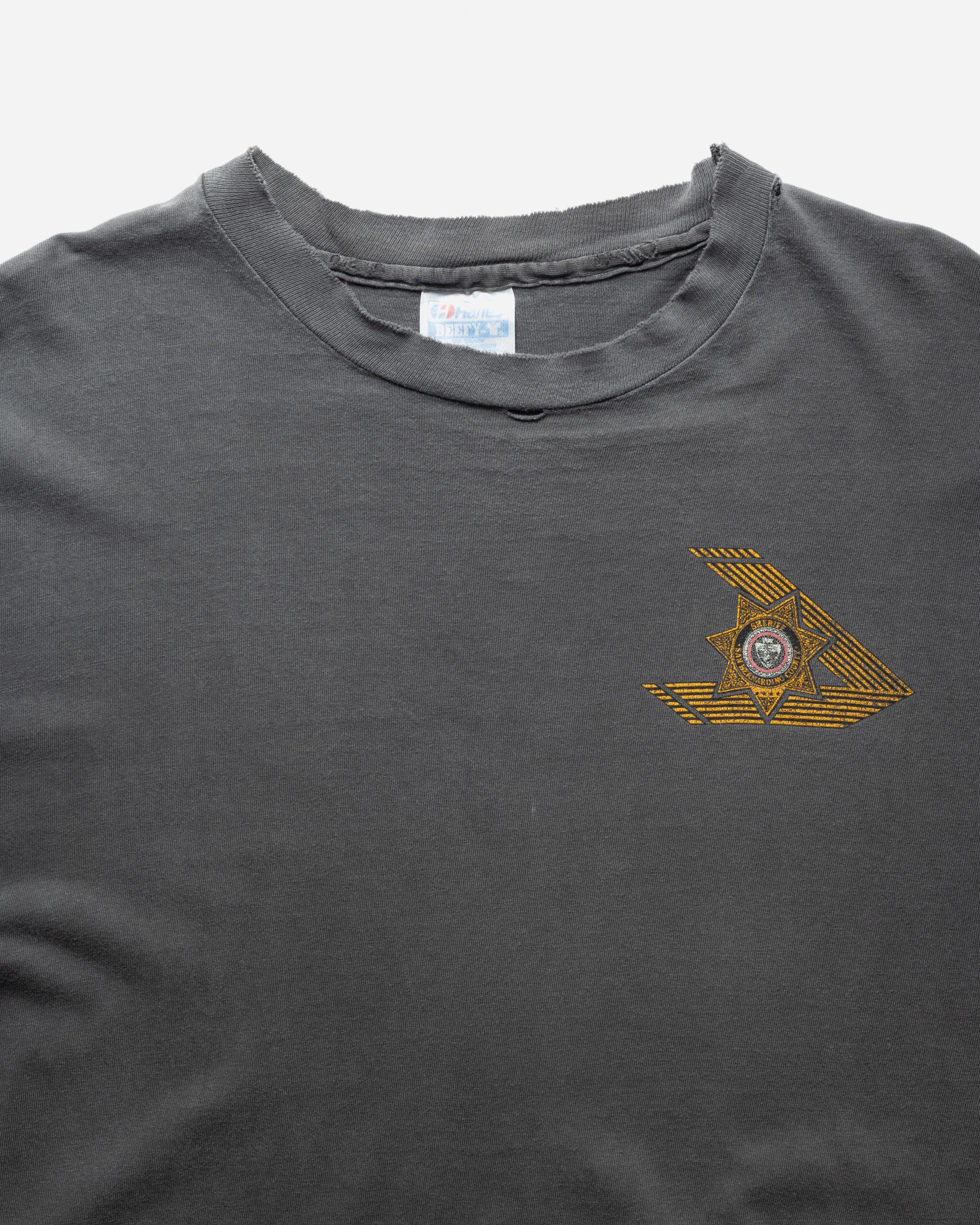 VINTAGE 1980S SAN BERNADINO SHERIFF DISTRESSED FADED BLACK TEE - X-LARGE is backordered and will ship as soon as it is back in stock.