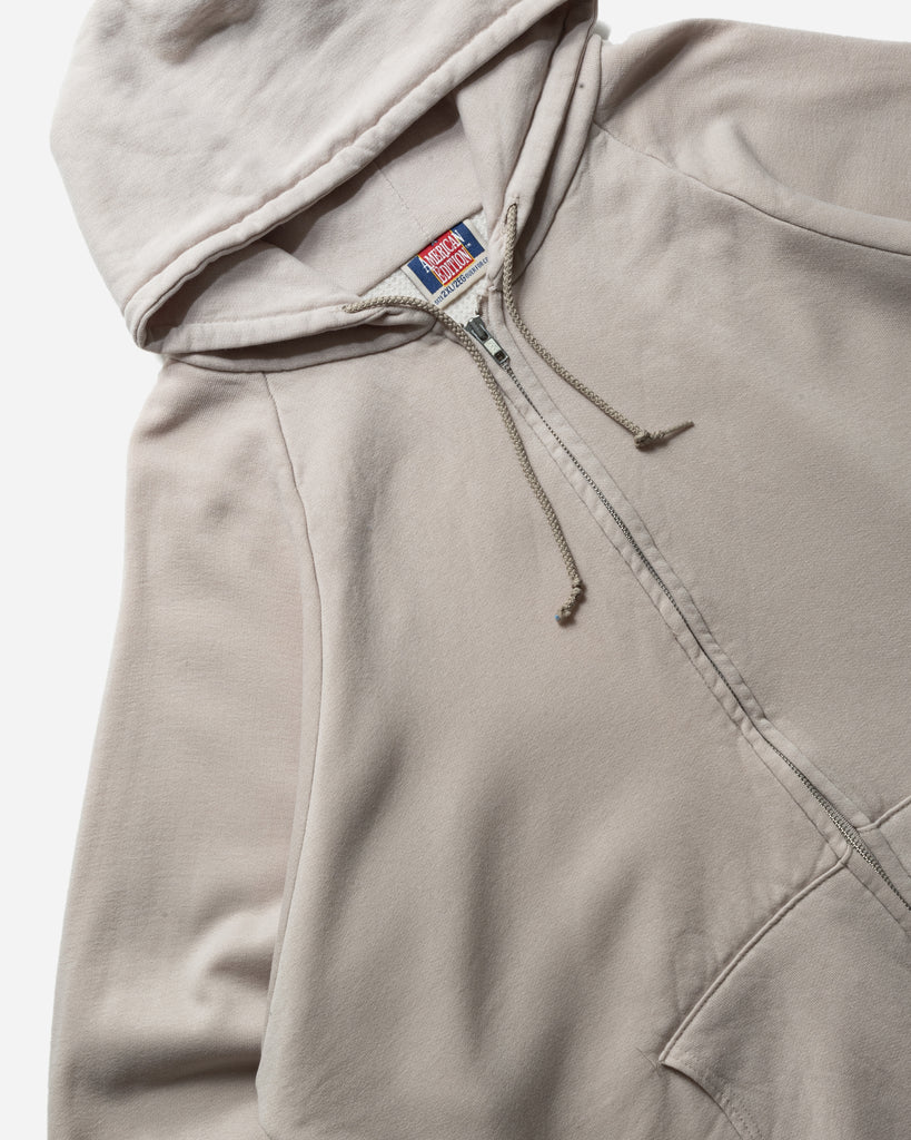 VINTAGE 1990S BEIGE THERMAL LINED ZIP UP HOODED SWEATSHIRT