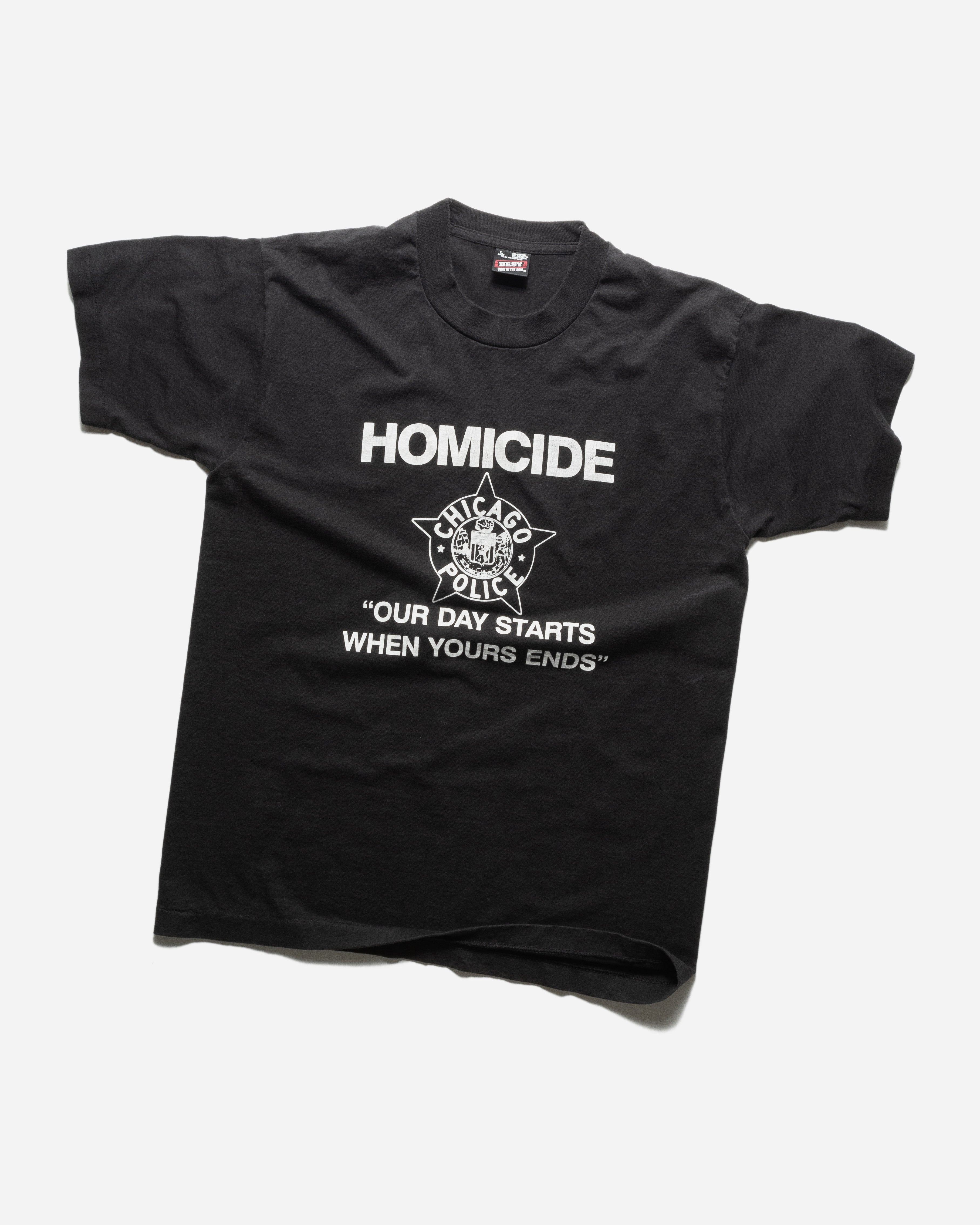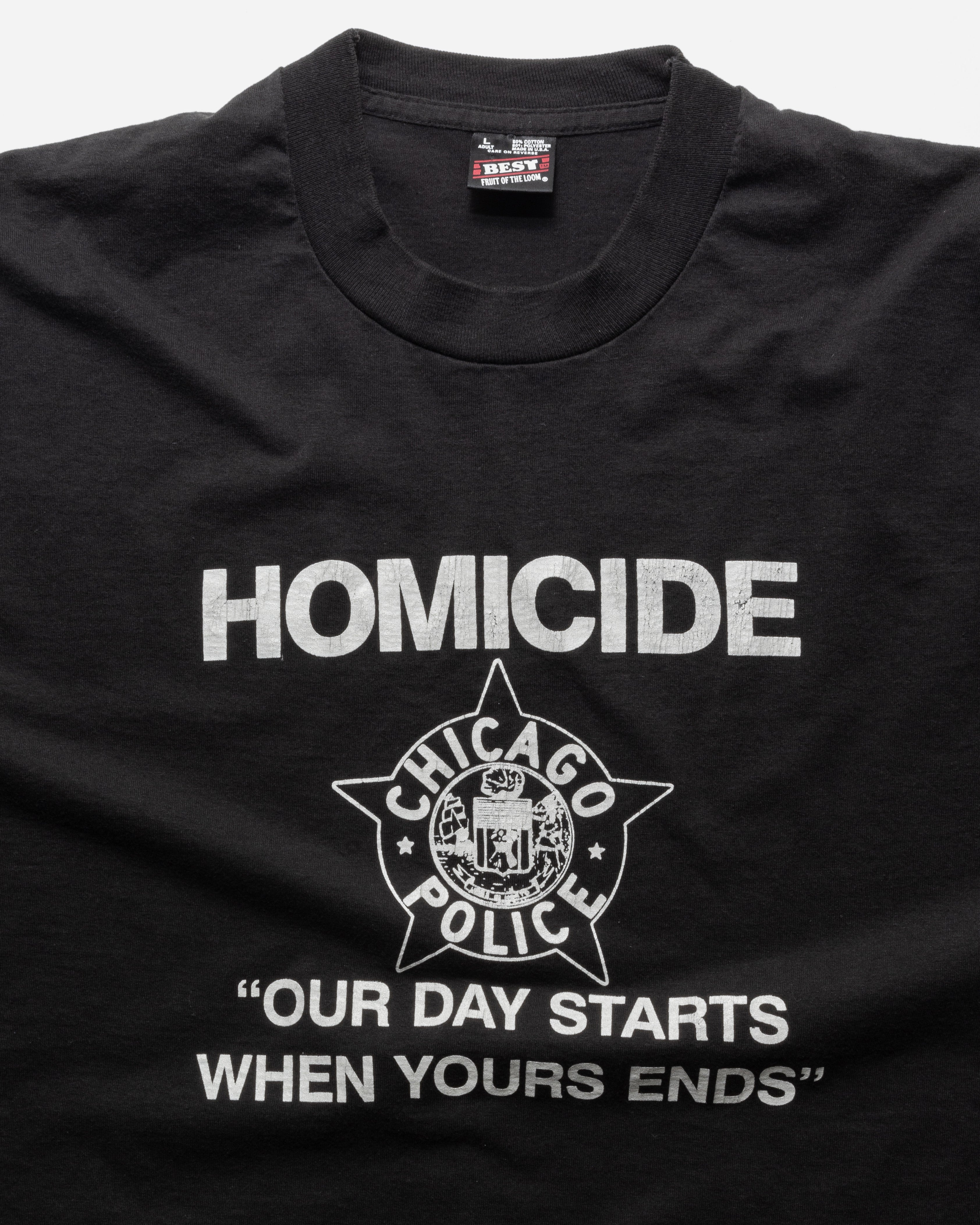 VINTAGE 1990S 'HOMICIDE' FADED BLACK TEE