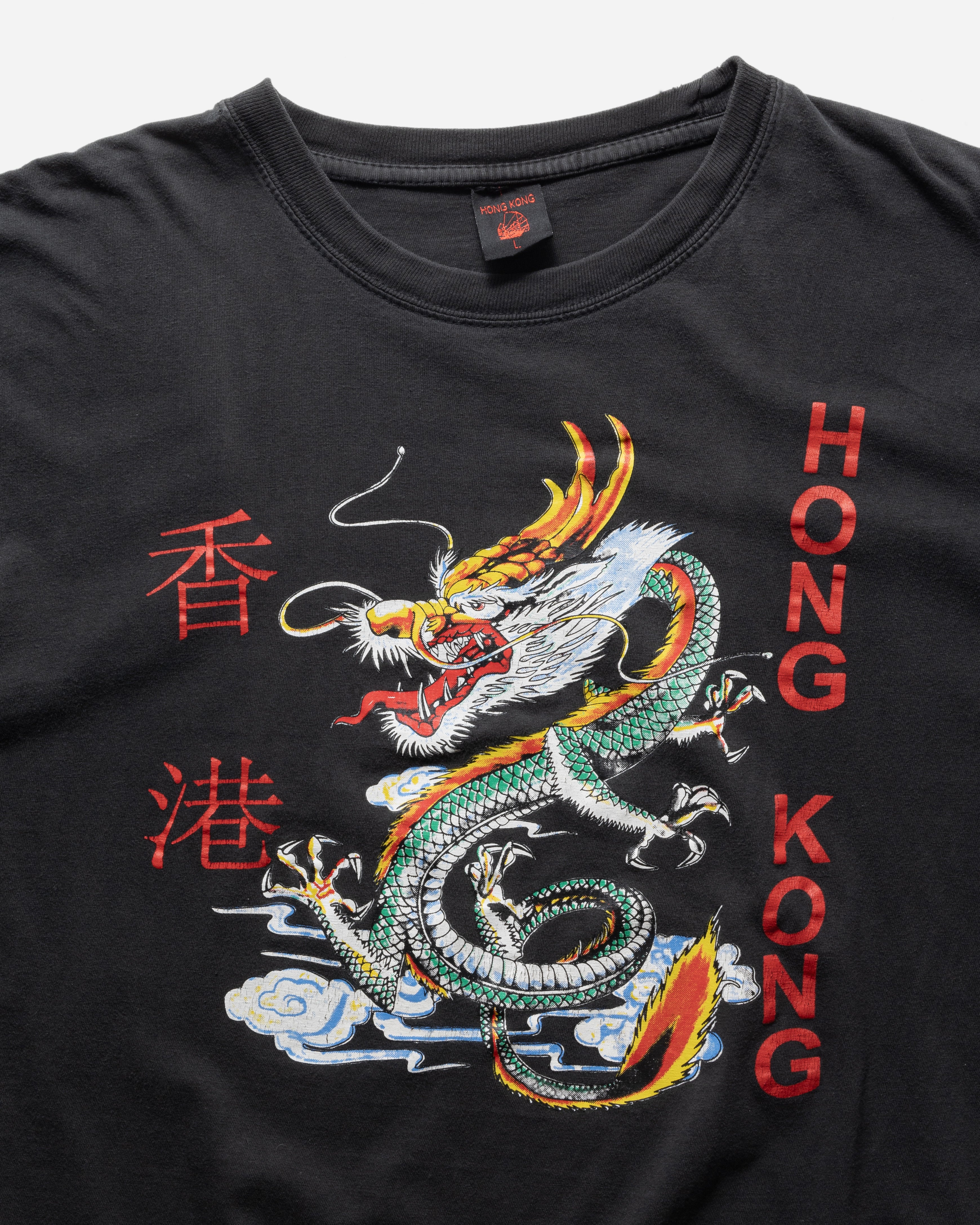 VINTAGE 1990S HONG KONG FADED BLACK SOUVENIR TEE