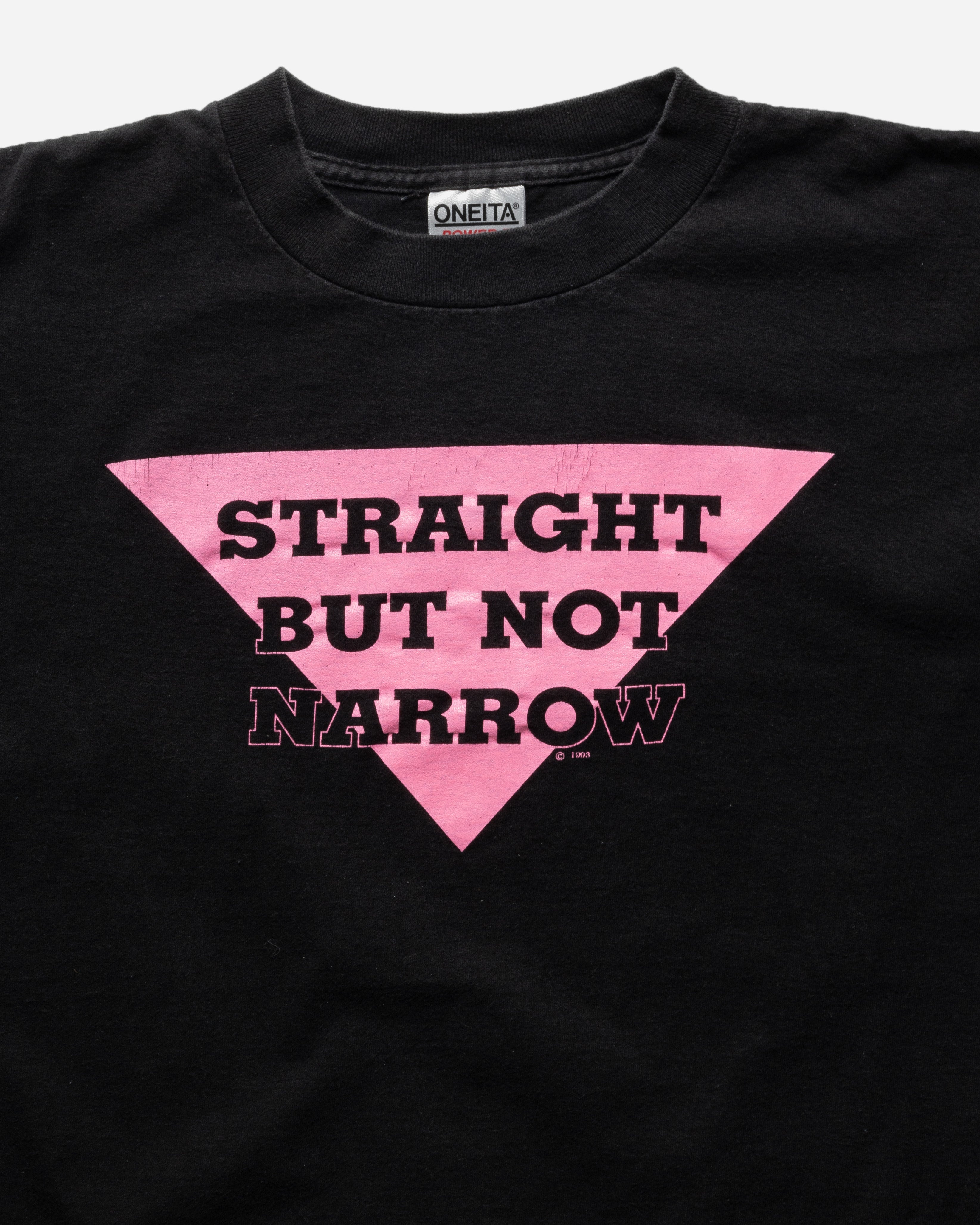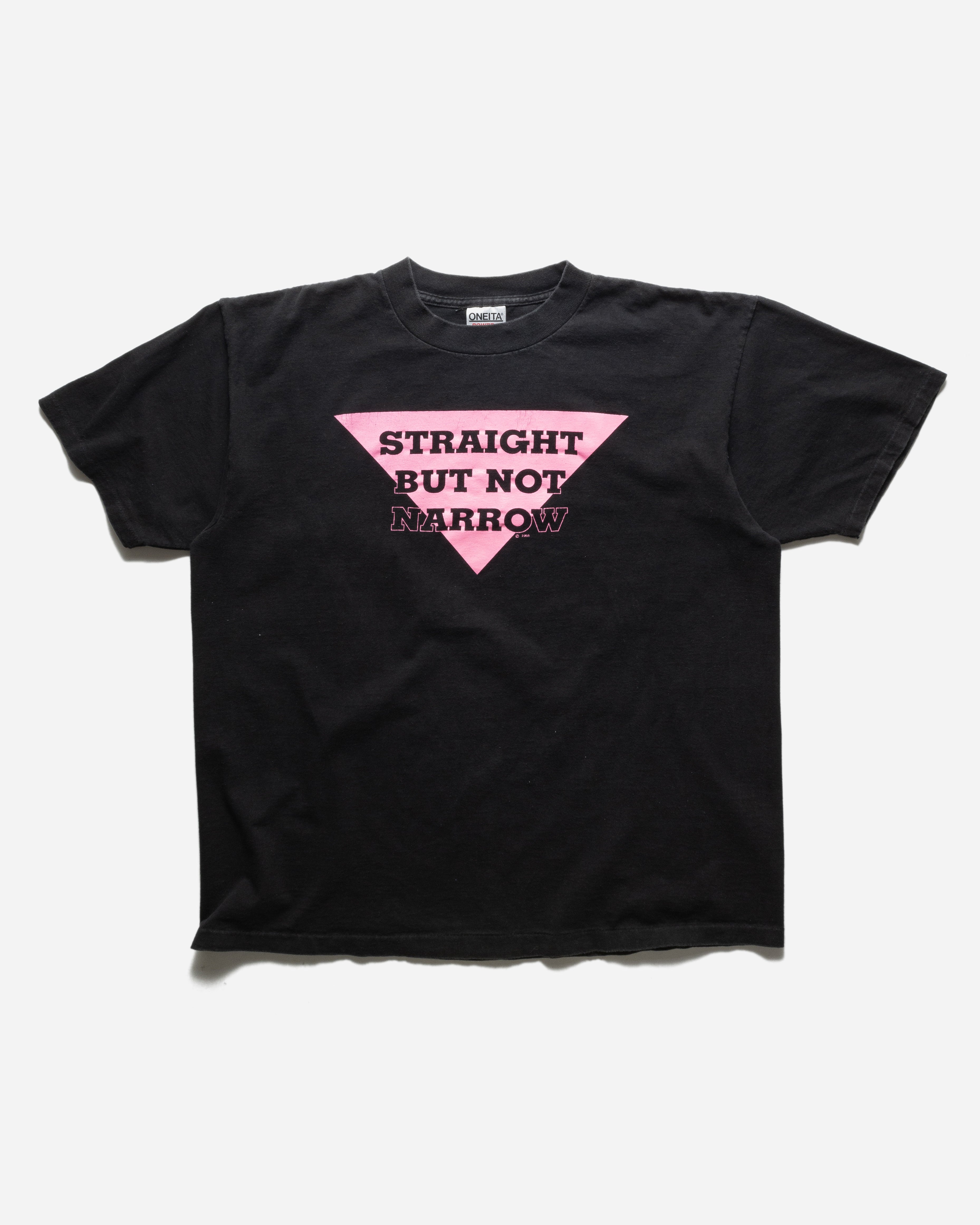 VINTAGE 1990S 'STRAIGHT BUT NOT NARROW' FADED BLACK TEE