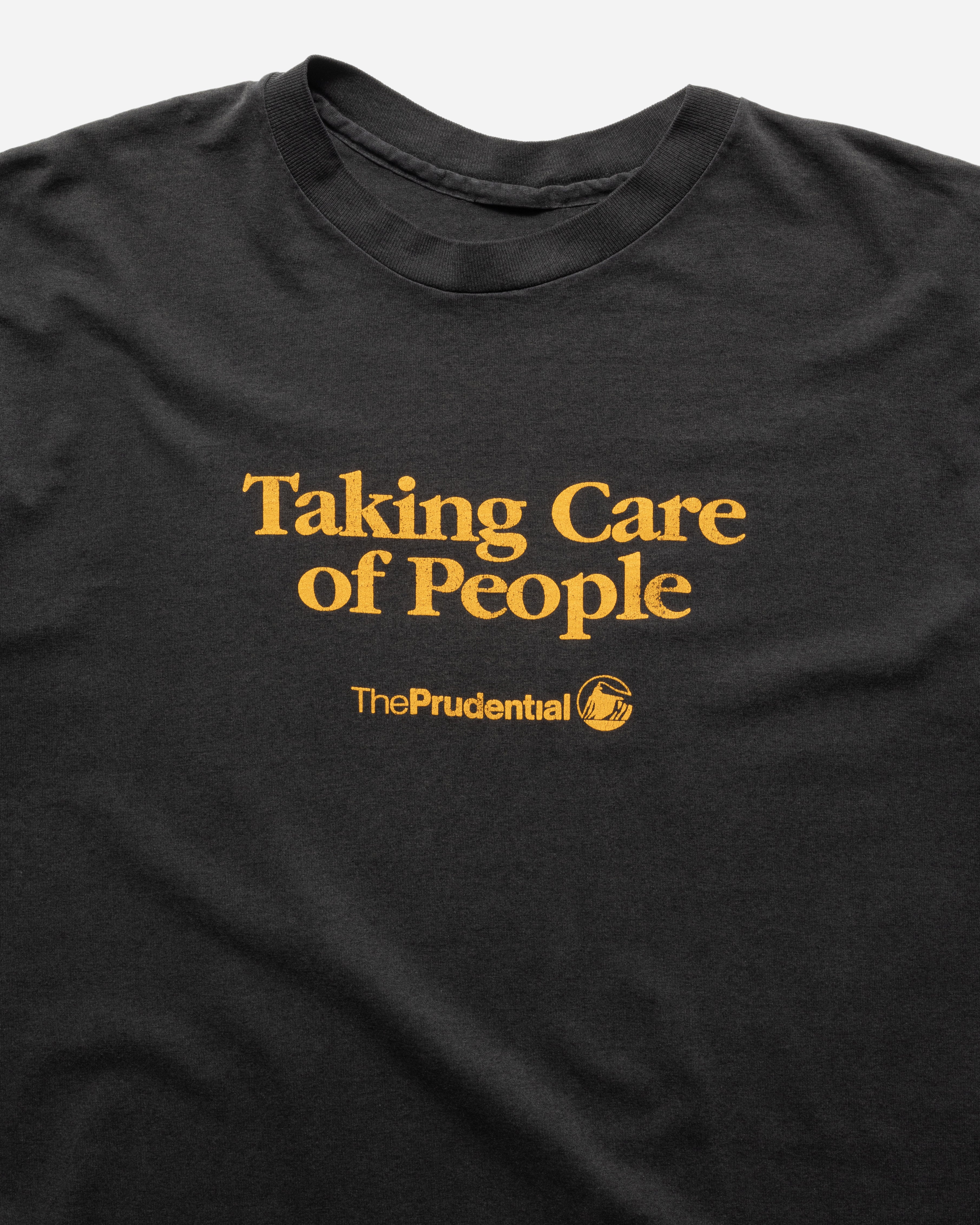 VINTAGE 1990S 'TAKING CARE OF PEOPLE' FADED BLACK TEE