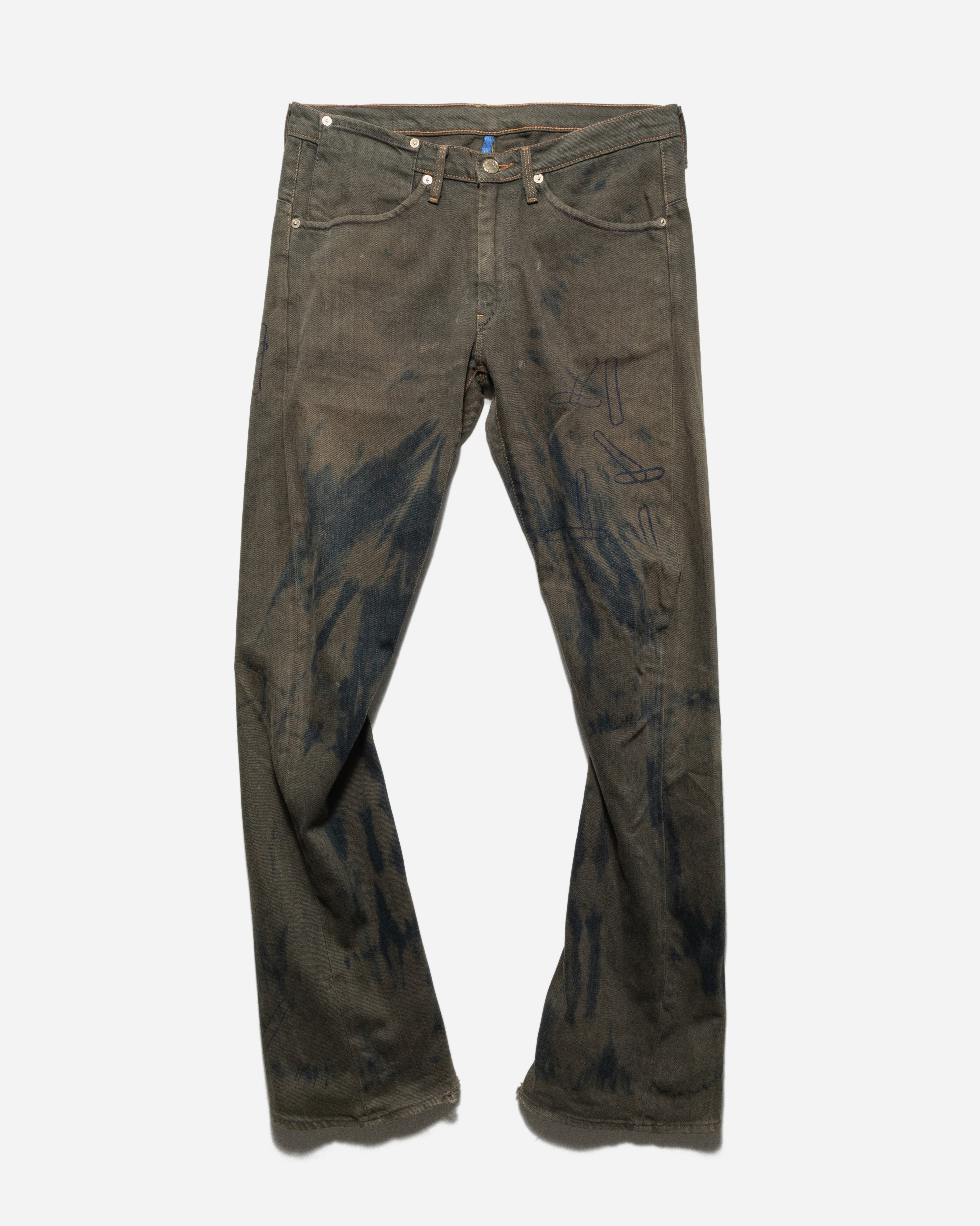 VINTAGE 2000S LEVI'S ENGINEERED TWISTED SEAM DYED GRAFFITI JEANS - 31 W /. 31.5 L is backordered and will ship as soon as it is back in stock.