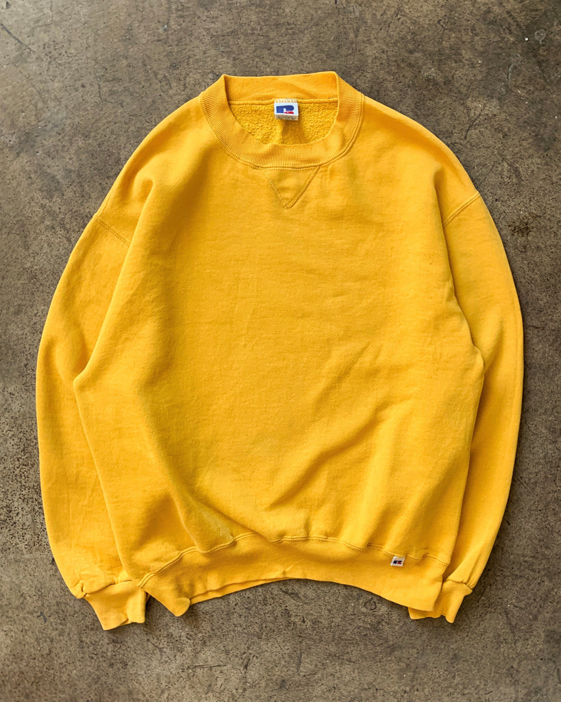 Russell Sunflower Yellow Blank Crewneck Sweatshirt - 1990s