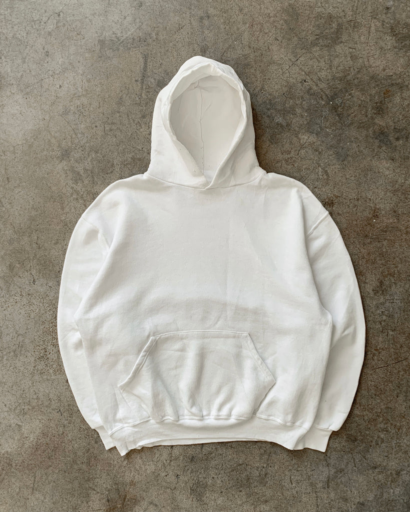 Russell White Blank Hooded Sweatshirt - 1990s