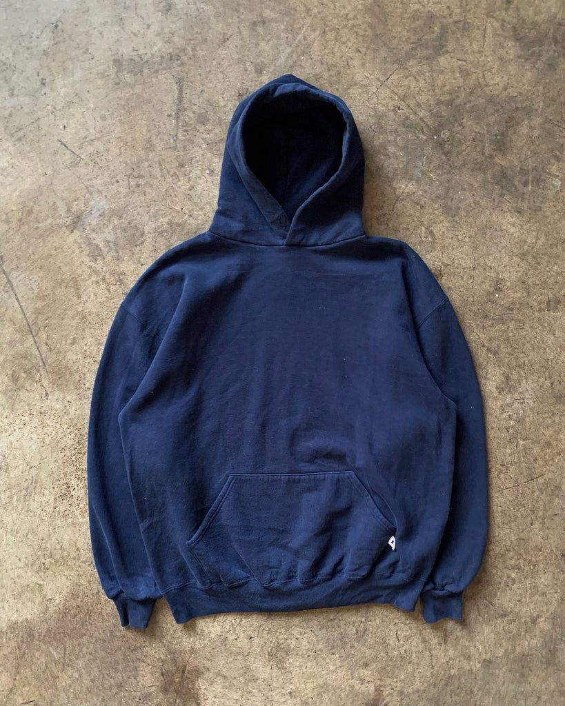 Russell Navy Blank Hooded Sweatshirt - 1990s