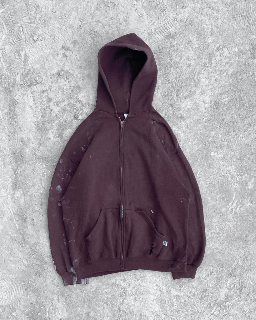 Russell Burgundy Zip Up Hooded Sweatshirt - 1990s