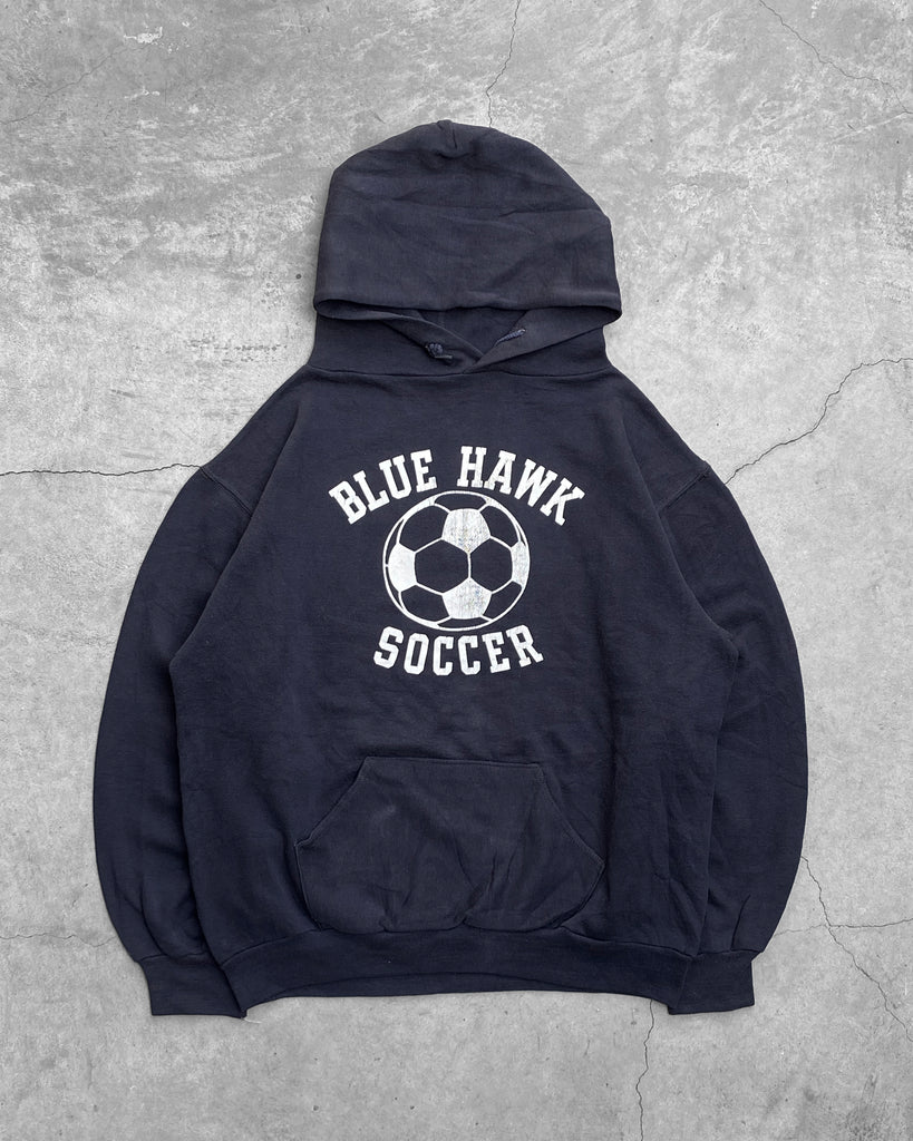 Navy "Blue Hawk Soccer" Hooded Sweatshirt - 1970s