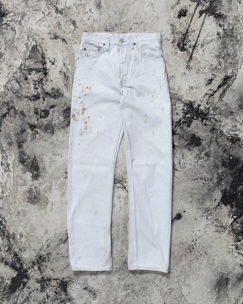 Levi's 501 Beige Painted & Stained Jeans - 1990s