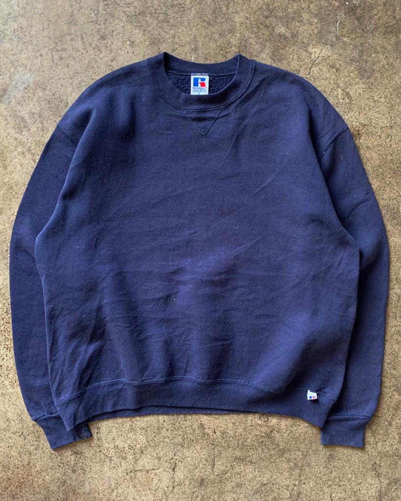 Russell Navy Blank Crewneck Sweatshirt - 1990s