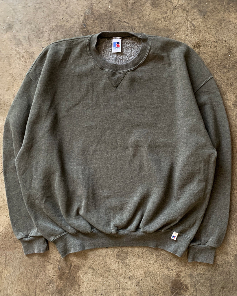 Russell Army Green Blank Crewneck Sweatshirt - 1990s