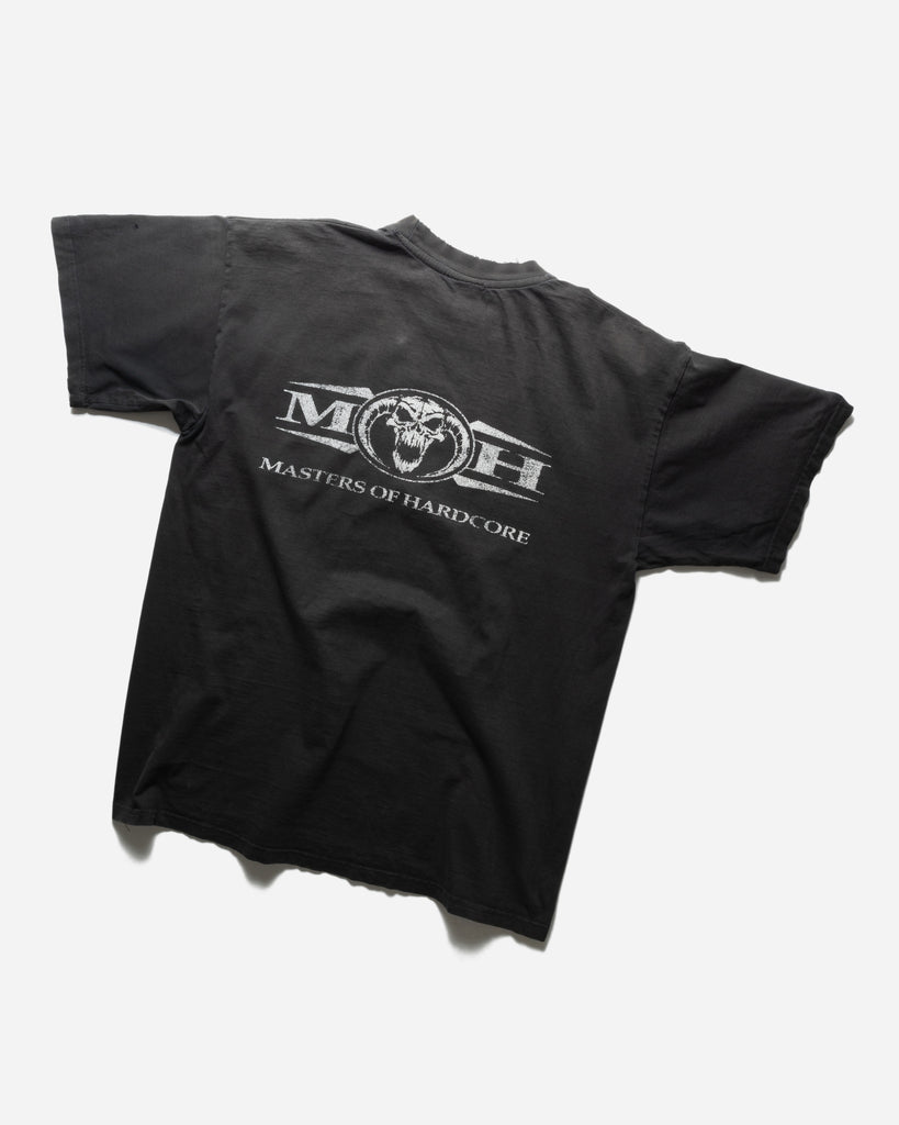 VINTAGE 1990S MASTERS OF HARDCORE DISTRESSED & FADED BLACK TECHNO TEE