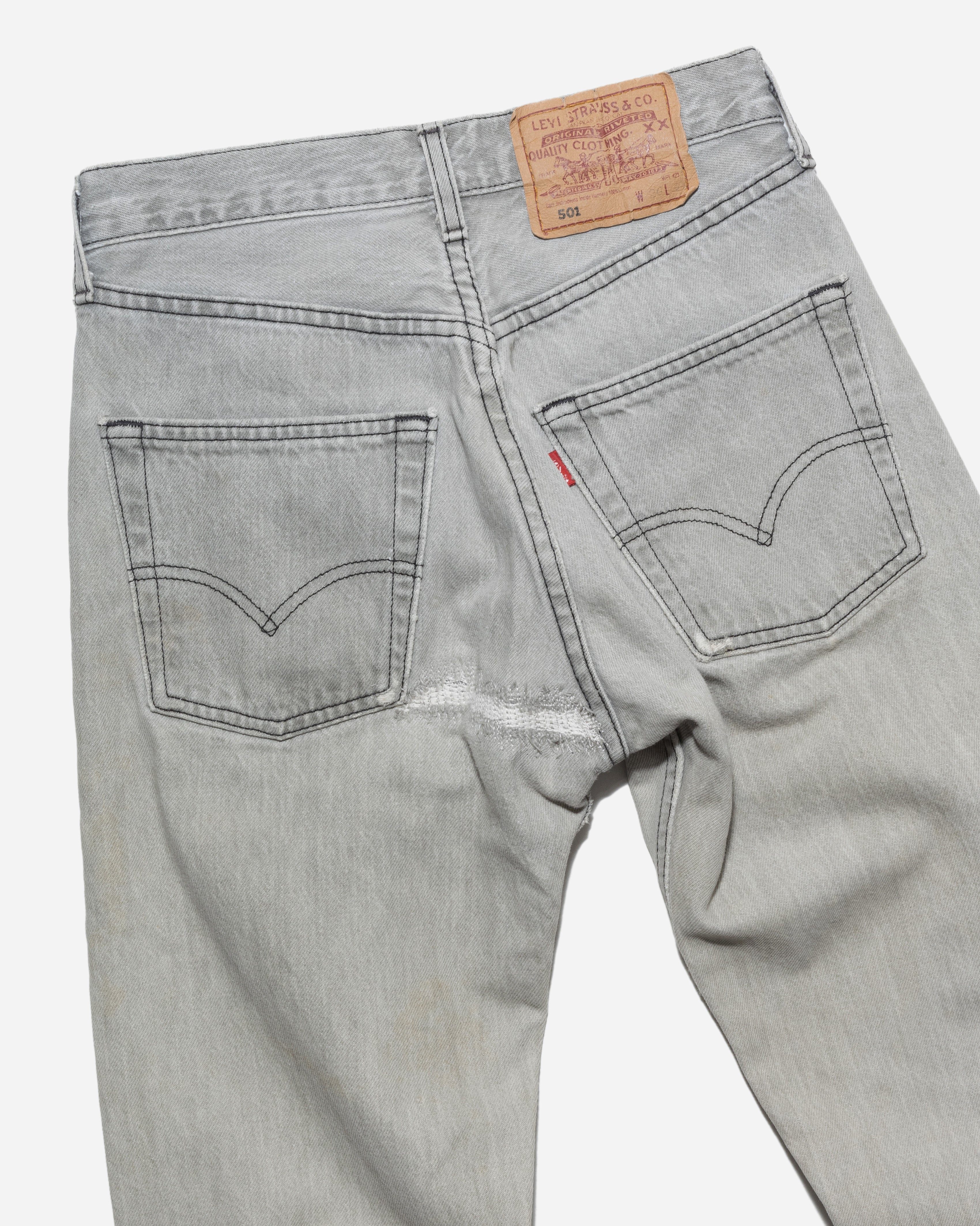 VINTAGE 1990S LEVI'S 501 FADED GREY JEANS - 25 W / 32.5 L is backordered and will ship as soon as it is back in stock.